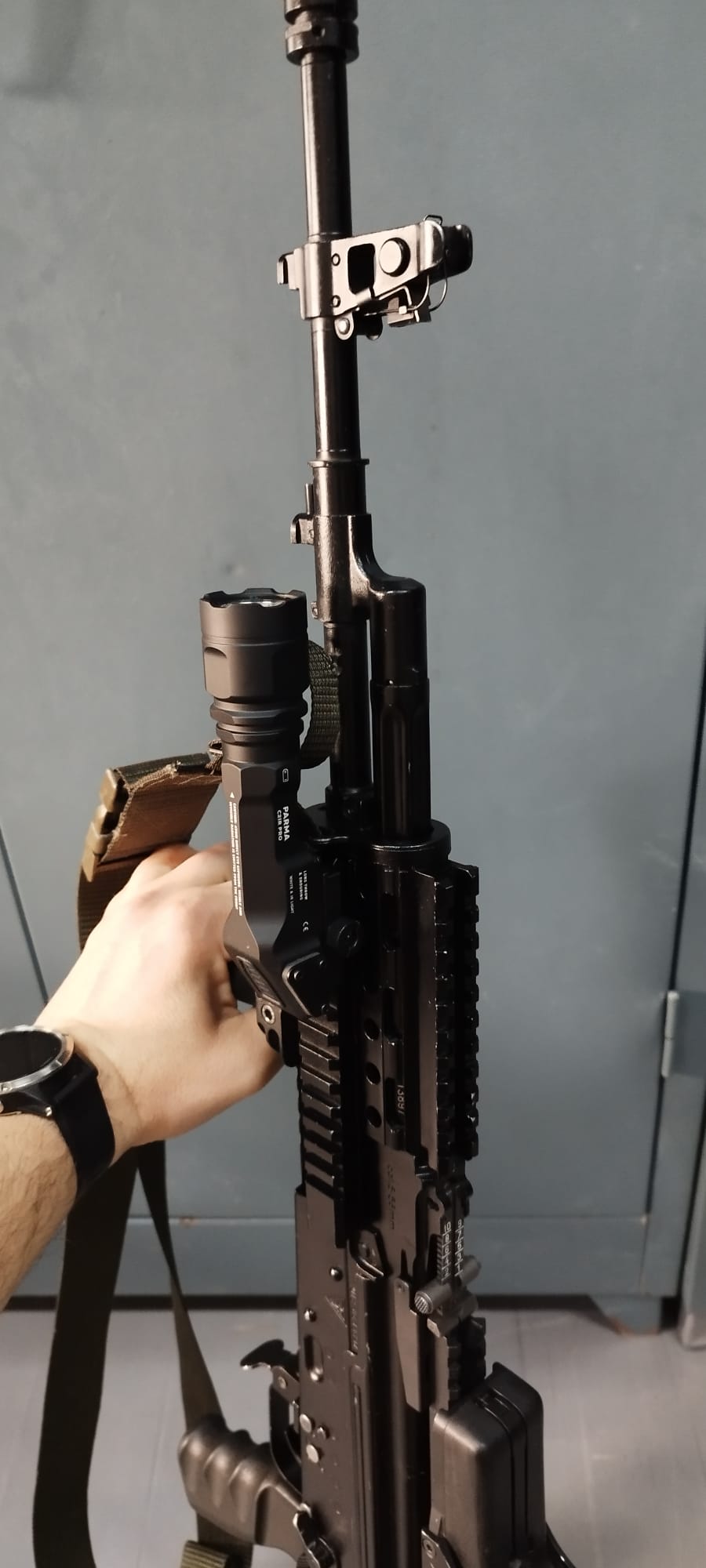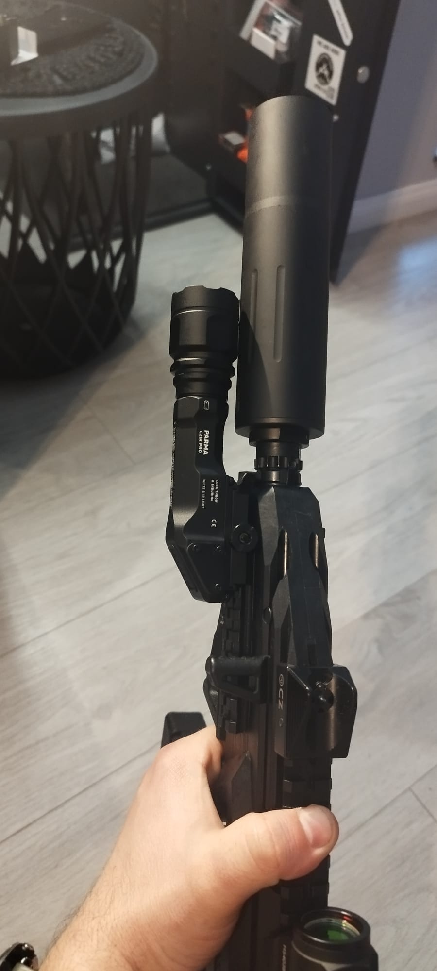 TIP! Pasuje bardzo dobrze do broni bojowej np. BERYL z Fabryki Broni "Łucznik" w Radomiu. Sposób montażu pod kątem pozwala na swobodne operowanie karabinkiem oraz wykorzystanie w pełni latarki w działaniach w terenie. Sprawdza się także na CZ SCORPION EVO3 S1 kal. 9x19.