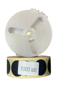 - 1 rolkę zaklejek czarnych lub białych (1000 szt.) o średnicy 16mm do MAŁEGO dyspensera,