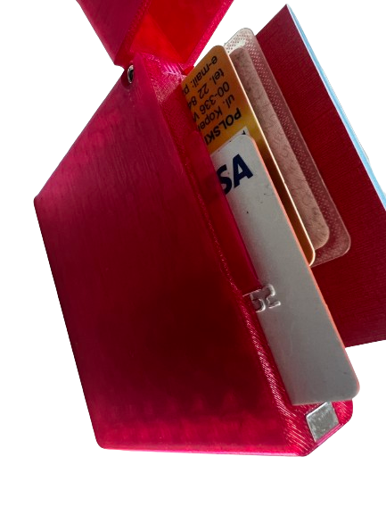 Posiada jedną przegródkę dużą na legitymację posiadacza broni lub osoby dopuszczonej do posiadania broni (czerwona książeczka o wymiarach 10,5 cm x 7,5 cm) oraz dwie małe np. na dowód osobisty, legitymację prowadzącego strzelanie, licencję zawodniczą, prawo jazdy czy kartę płatniczą - od Ciebie zależy jakie dokumenty będziesz potrzebował mieć ze sobą.