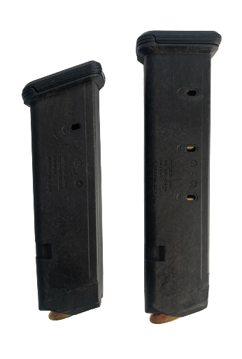 Uchwyty pasują do dwurzędowych magazynków broni palnej kaliber 9mm.