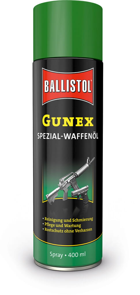 GUNEX 2000 nie łączy się z wodą, dlatego też idealnie chroni części metalowe przez rdzą. Ma bardzo dobre właściwości czyszczące, usuwa resztki prochu i tombaku a także starych zapieczonych olei. Dodatkową jego zaletą jest to, że nadaje poślizg mechanizmom trącym, nie zapieka się i nie klei. Preparat nie zawiera silikonu, żadnych związków zasadowych oraz FCKW.