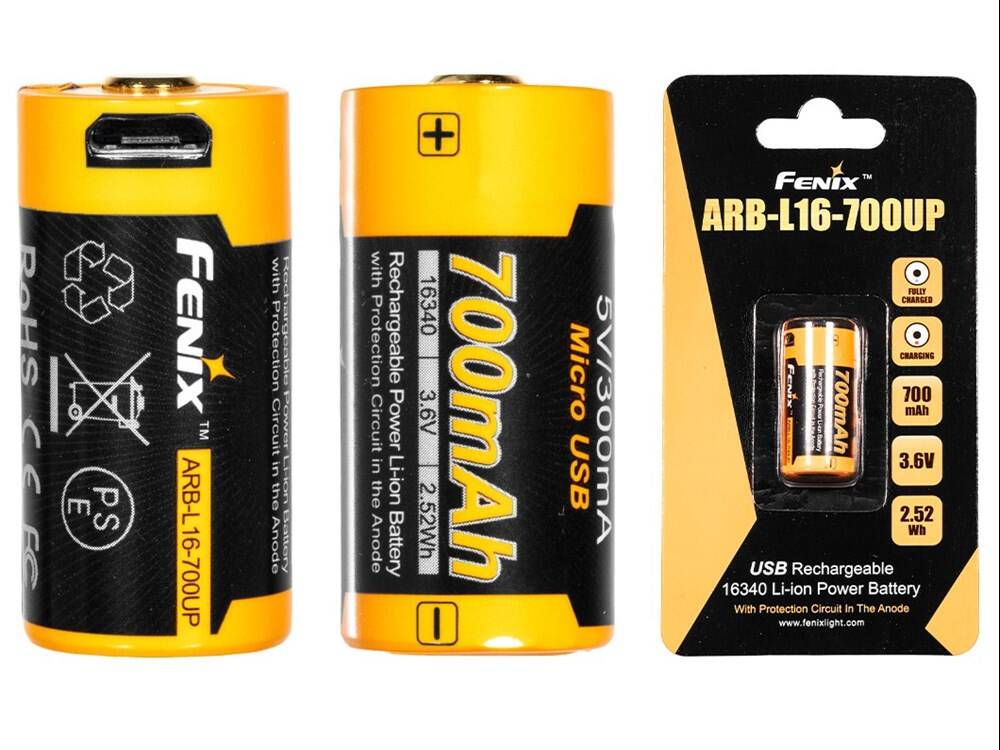Bateria - Fenix Akumulator Li-ion 16340 RCR123 700mAh 3,6V - USB - ARB-L16-700UP (Bateria Akumulatorek RCR123)