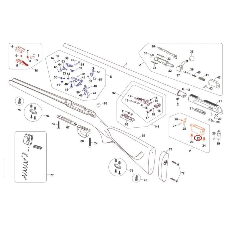 Komplet zawiera gniazdo, trzpień, sprężynę i zatrzask magazynka.