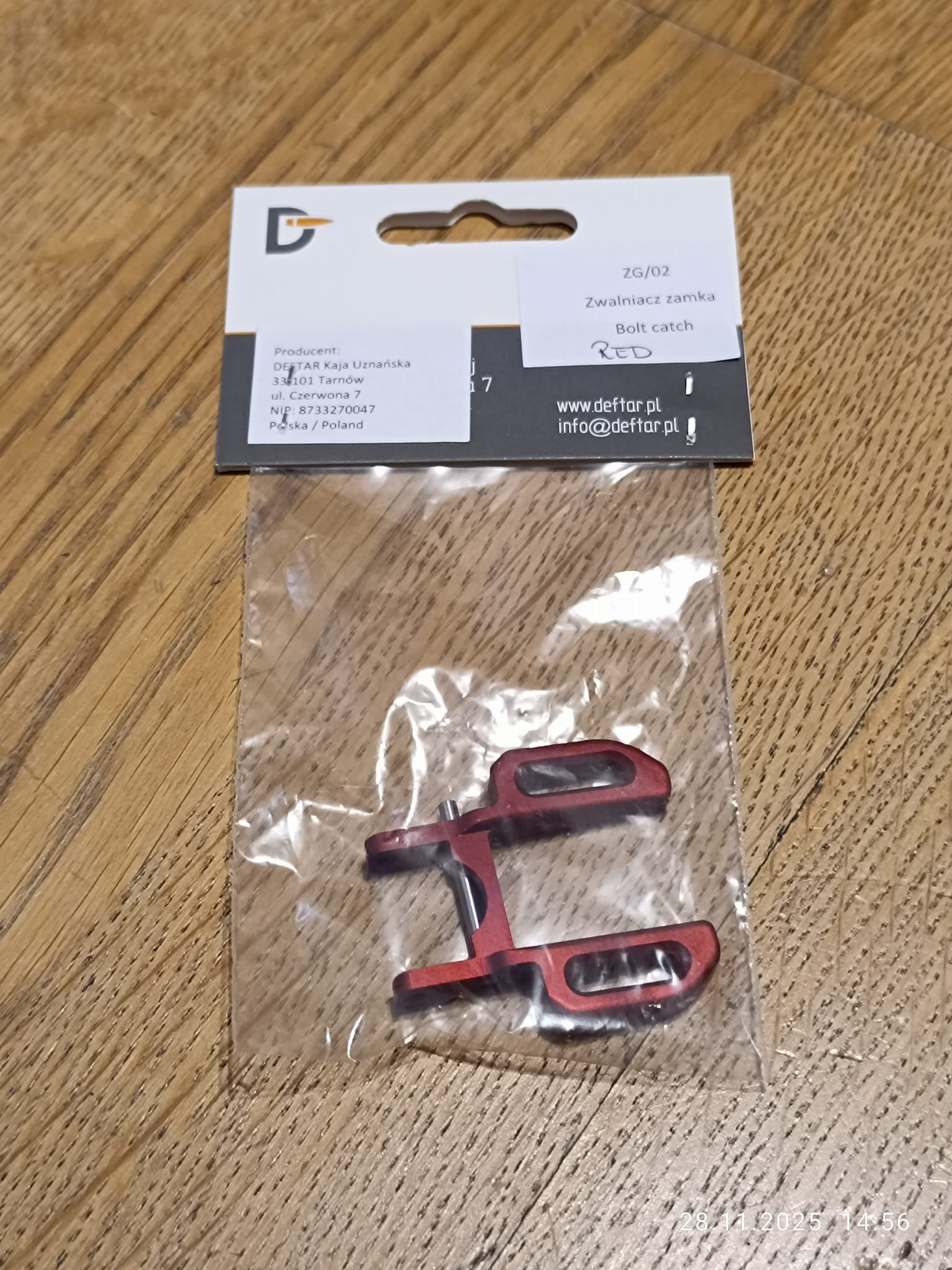 Zwalniacz zespołu ruchomego wykonany z aluminium o zwiększonej odporności mechanicznej względem standardowego wykonanego z tworzywa sztucznego przez Fabrykę Broni w Radomiu.