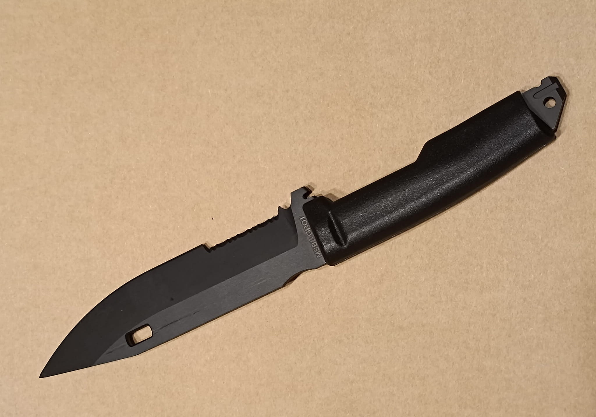 Stalowy trzpień z tyłu noża oprócz funkcji mocowania bagnetu pod lufą, może służyć też jako zbijak do szyb. W trzpieniu znajduje się otwór do przewleczenia rzemienia lub linki.