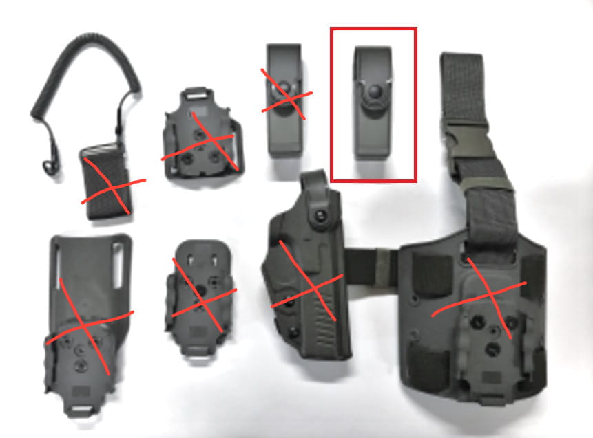 Oryginalny i kompletny zestaw kabury taktycznej z dodatkami zawiera: