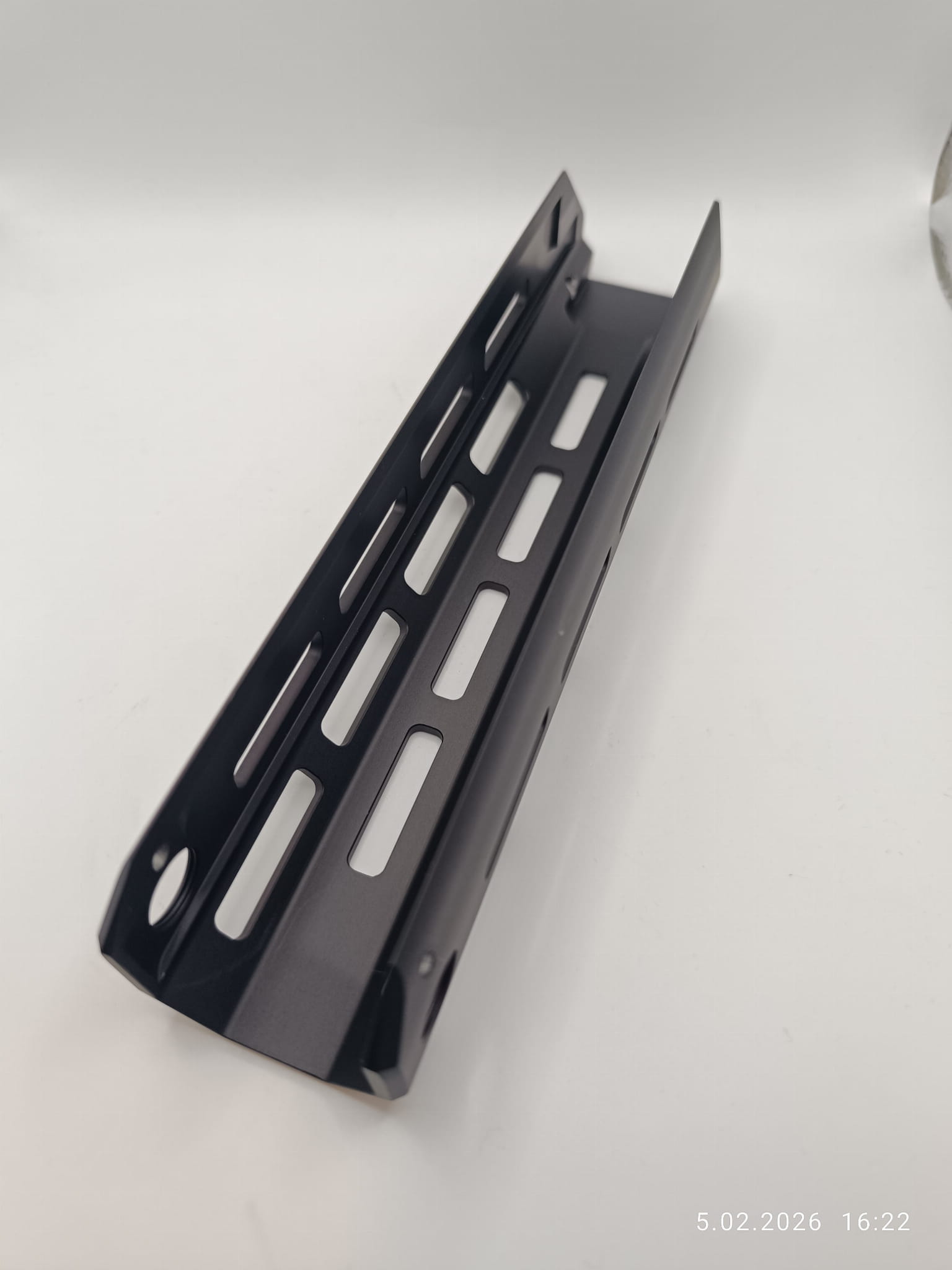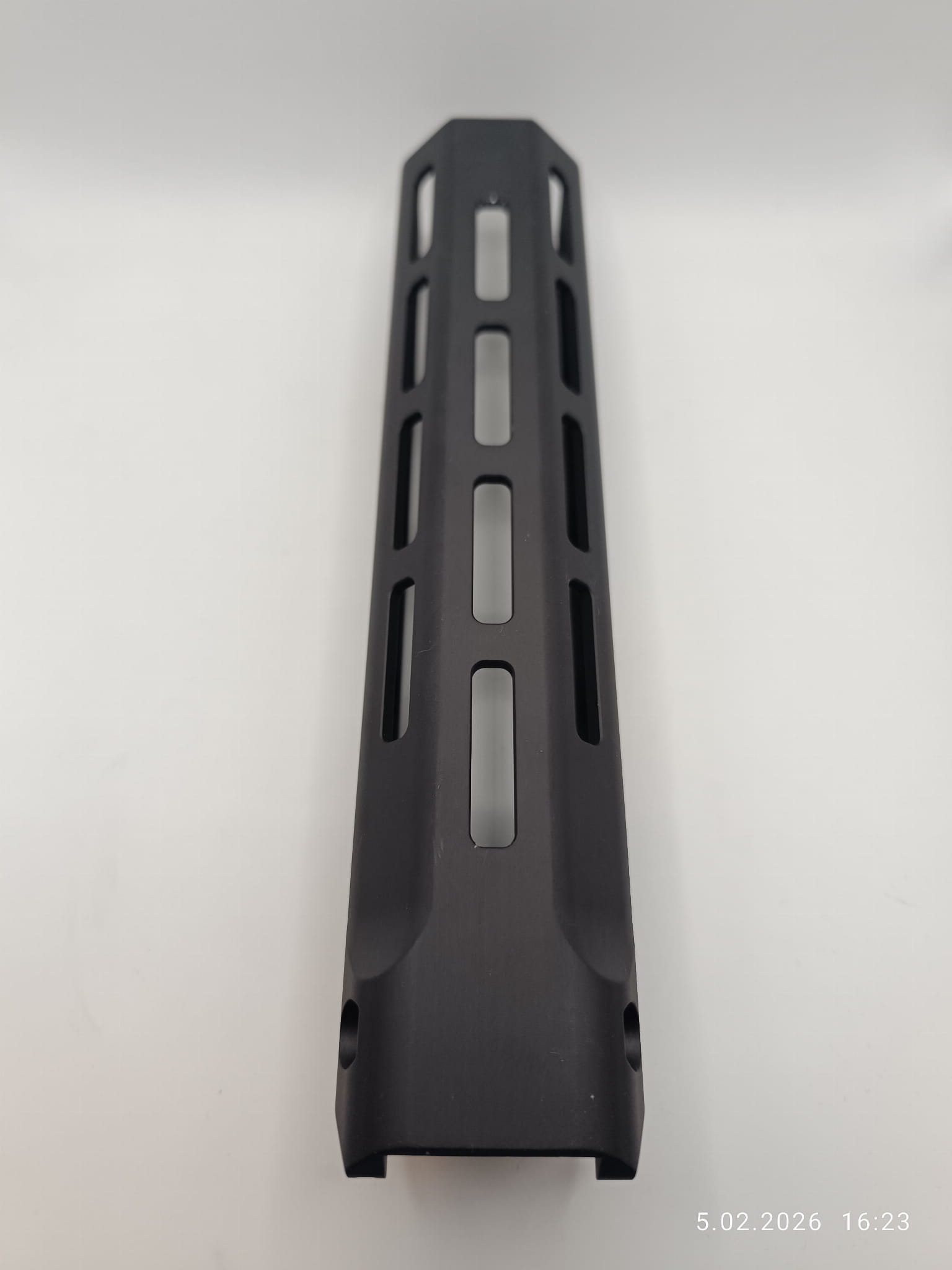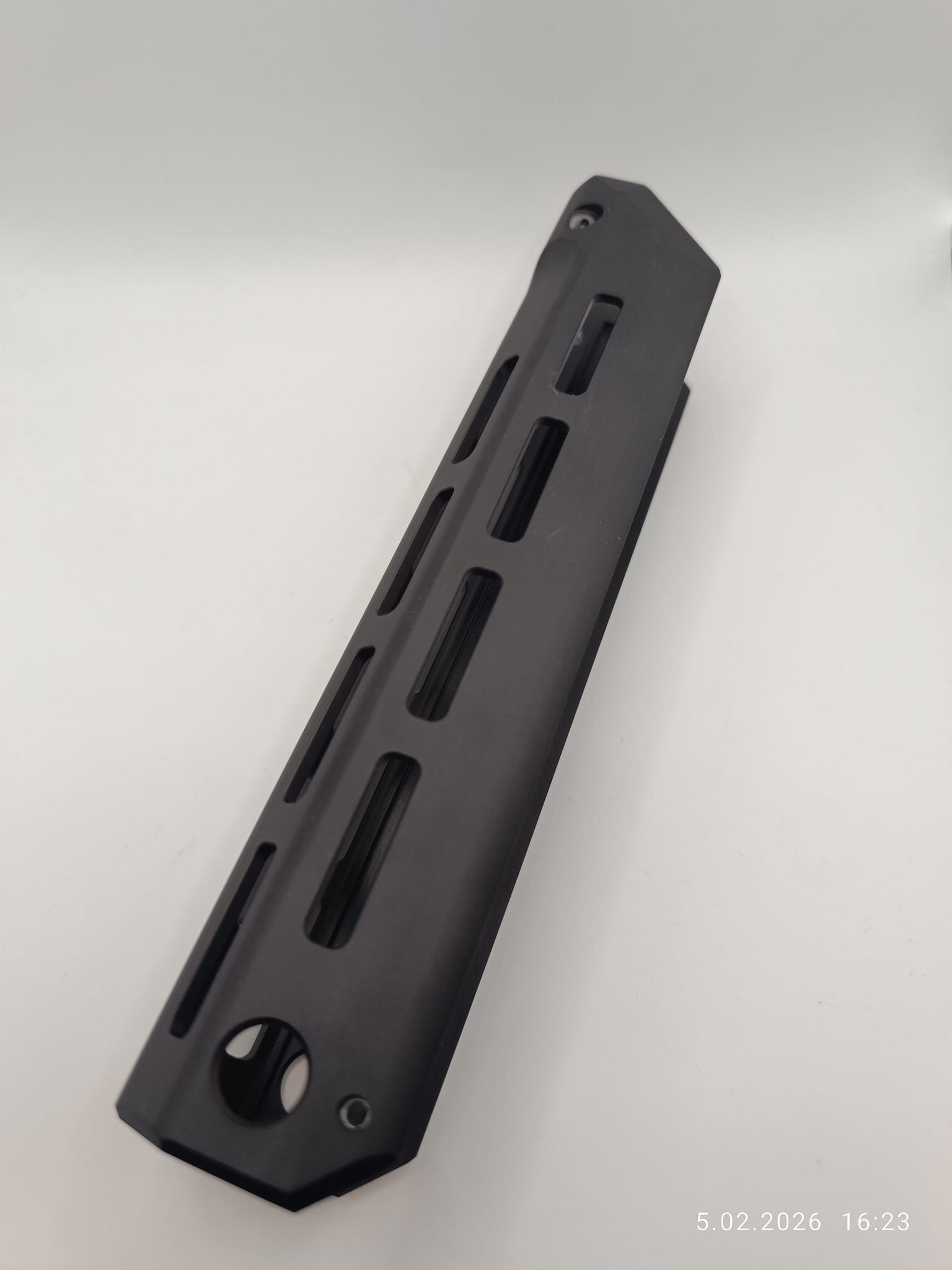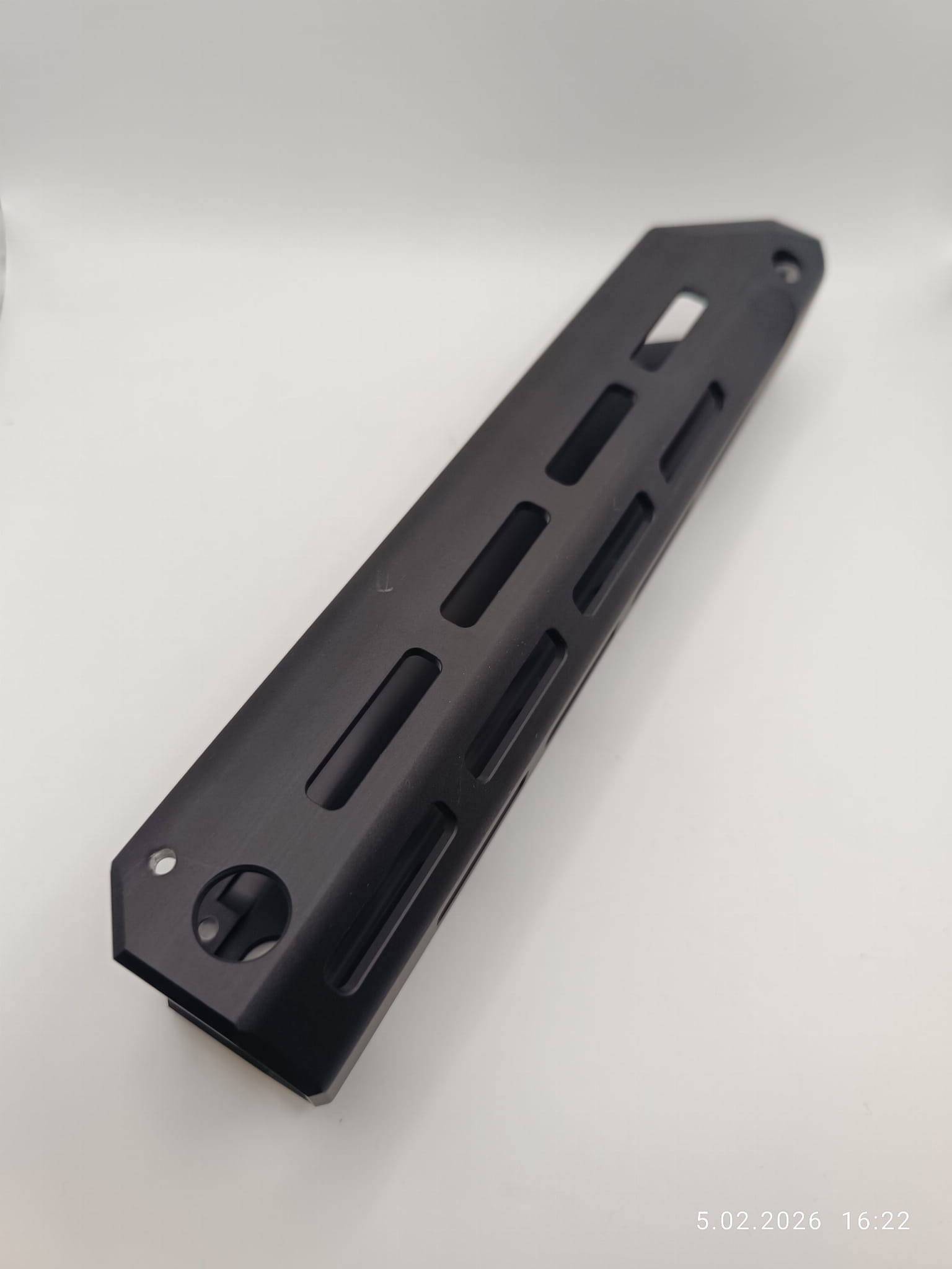 Krótkie nieuzbrojone łoże (NIE M-LOK !!!) w wersji WOJSKOWEJ A0/A1 sloty wg FBŁR - inny wymiar otworów niż M-LOK (bez szyn Picatinny, bez kołków, bez gniazda pasa itd.) wykonane z aluminium lotniczego o wysokiej wytrzymałości.