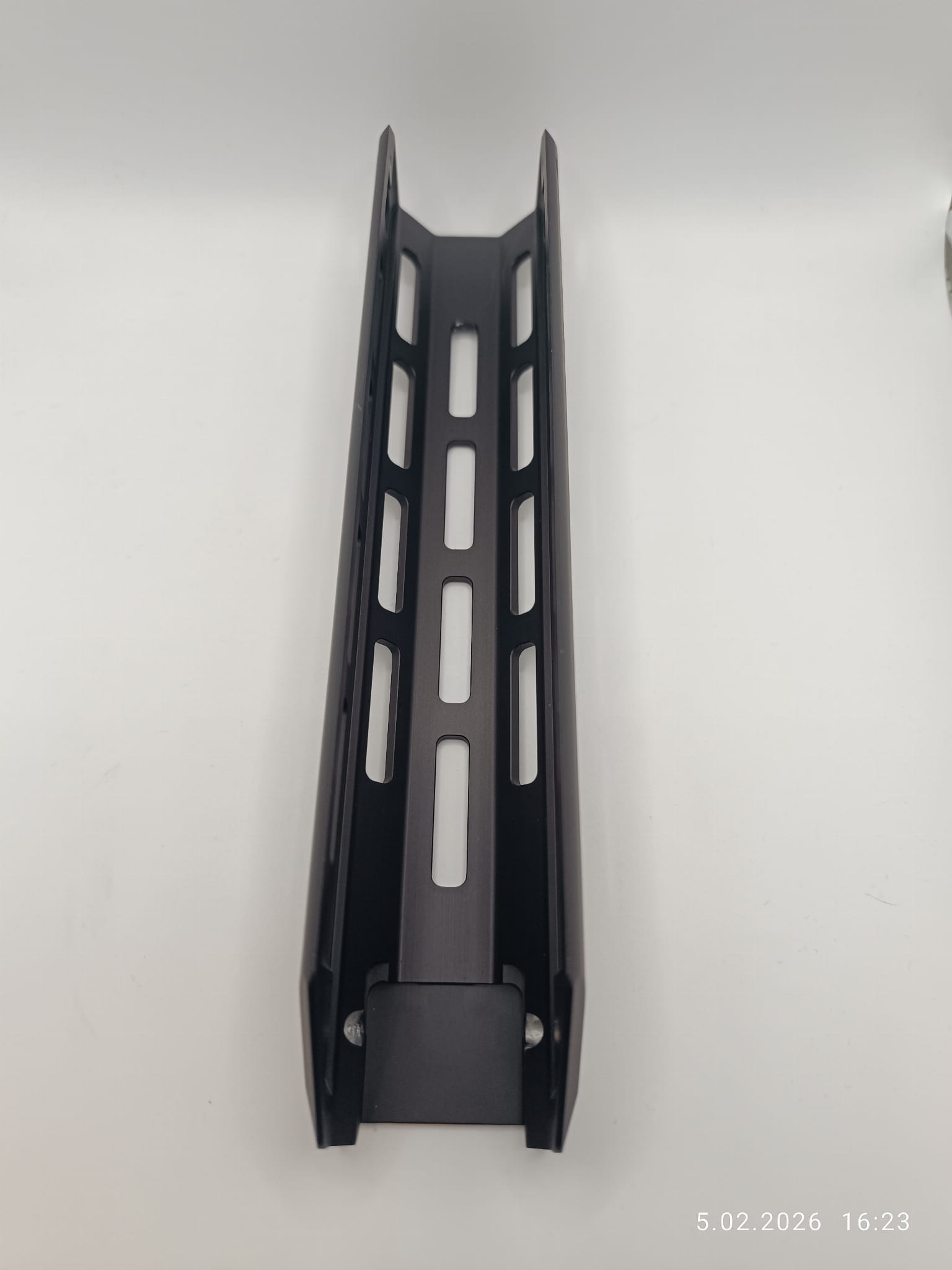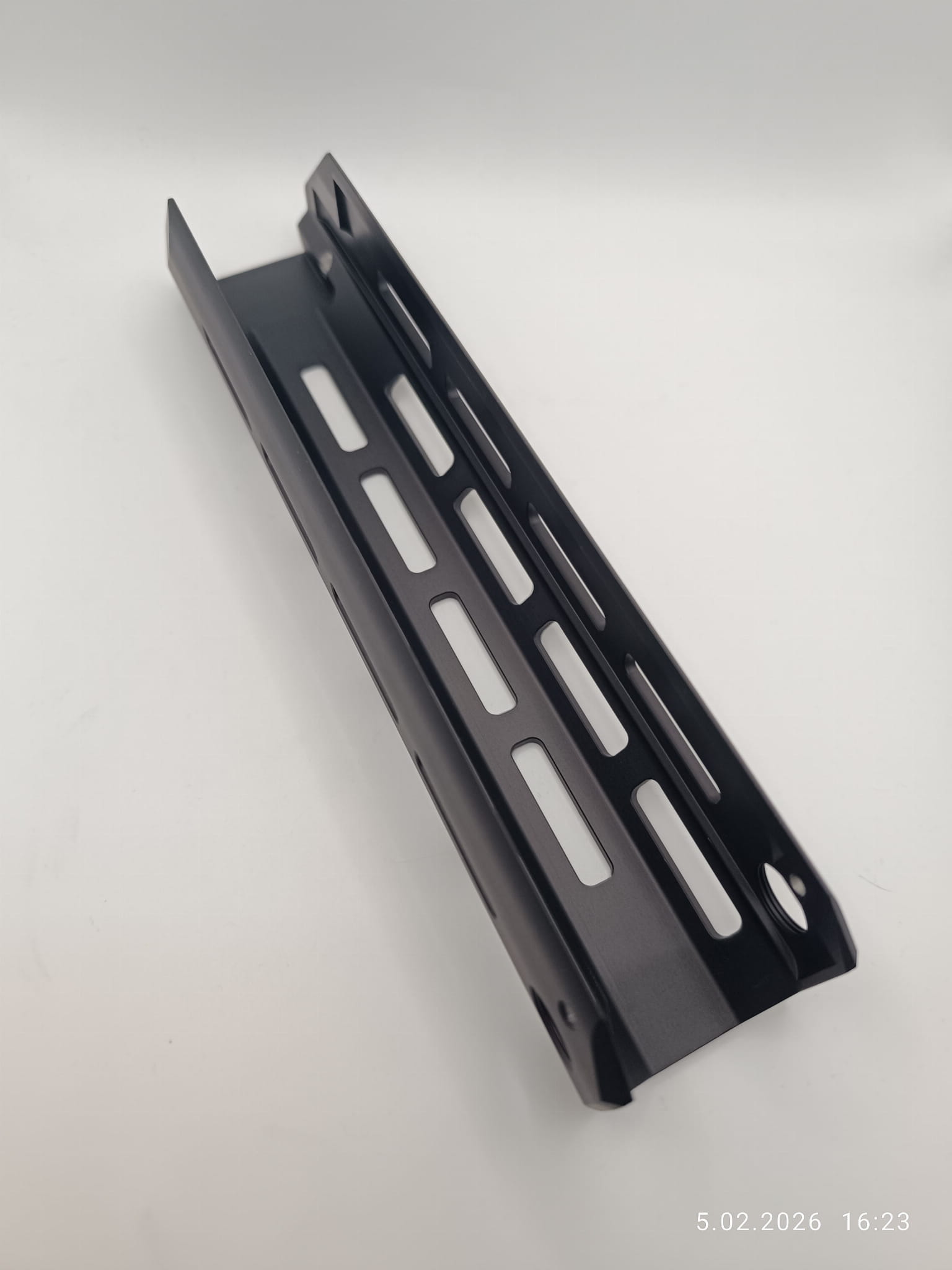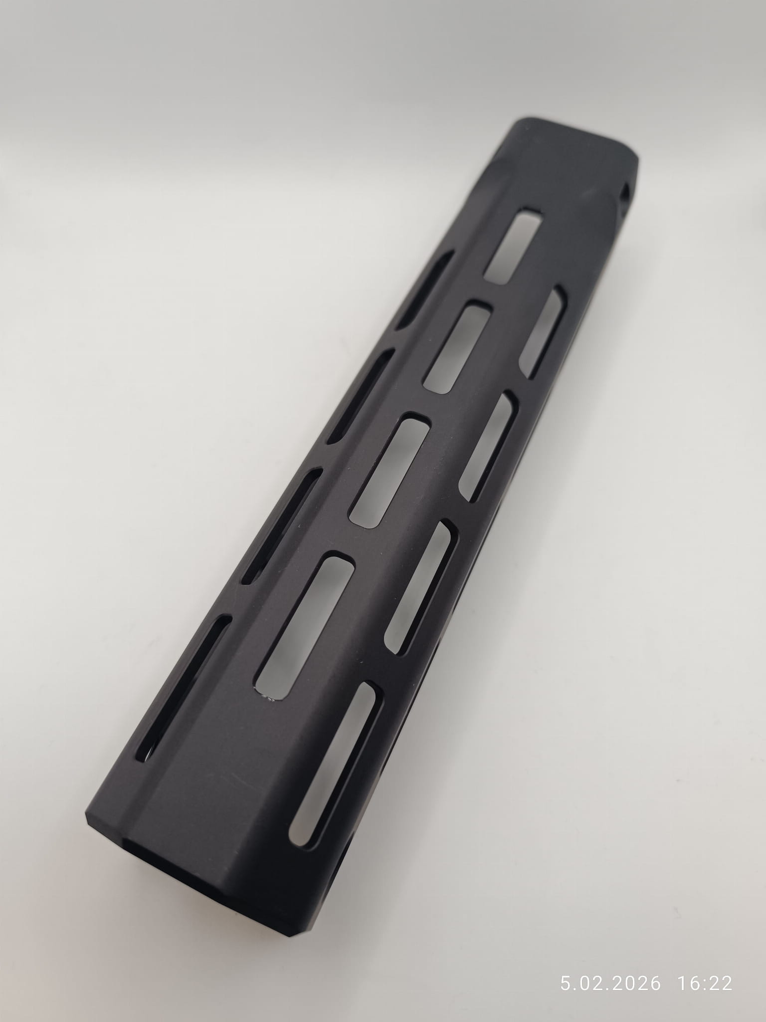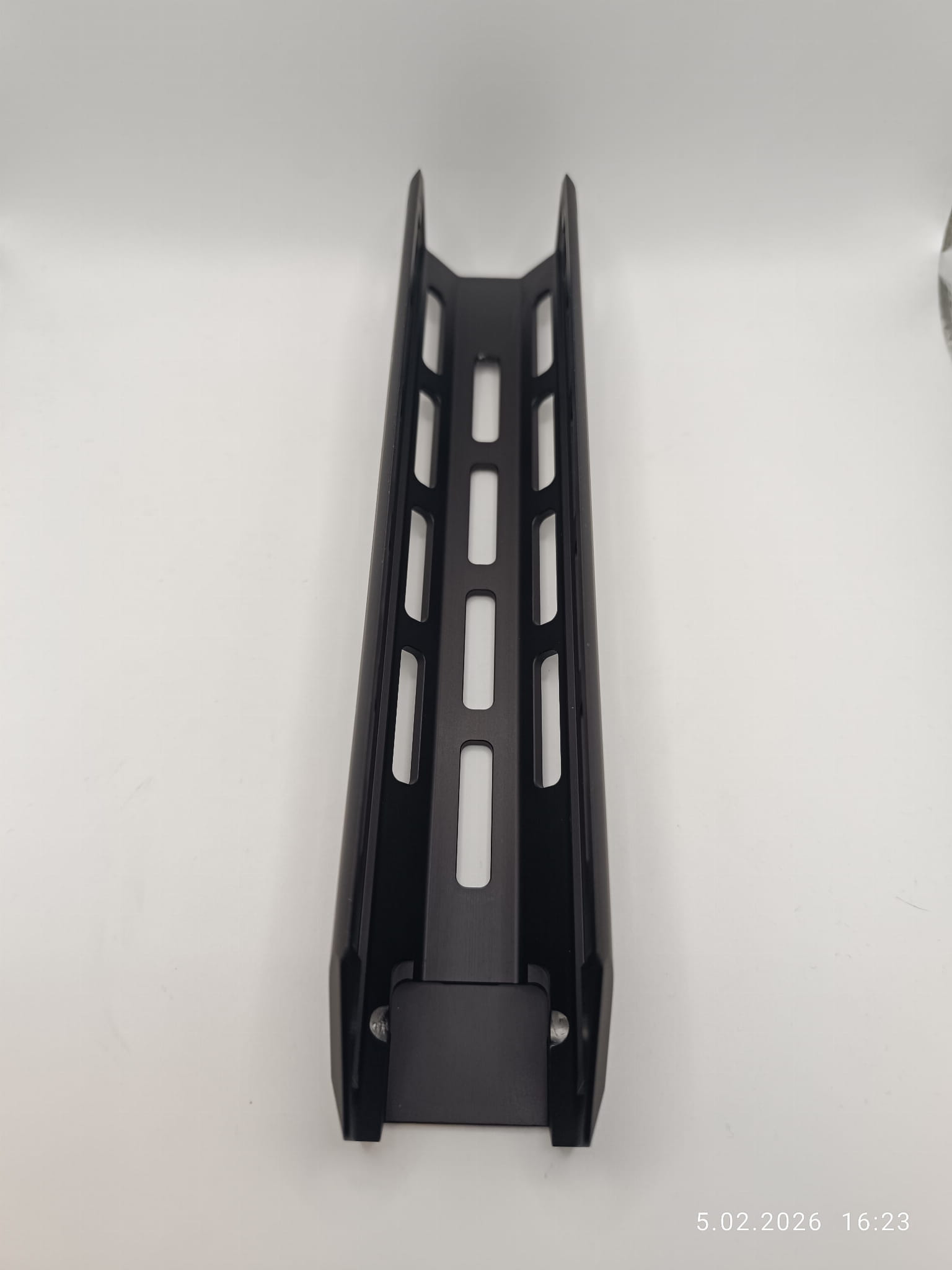 Krótkie nieuzbrojone łoże (NIE M-LOK !!!) w wersji WOJSKOWEJ A0/A1 sloty wg FBŁR - inny wymiar otworów niż M-LOK (bez szyn Picatinny, bez kołków, bez gniazda pasa itd.) wykonane z aluminium lotniczego o wysokiej wytrzymałości.