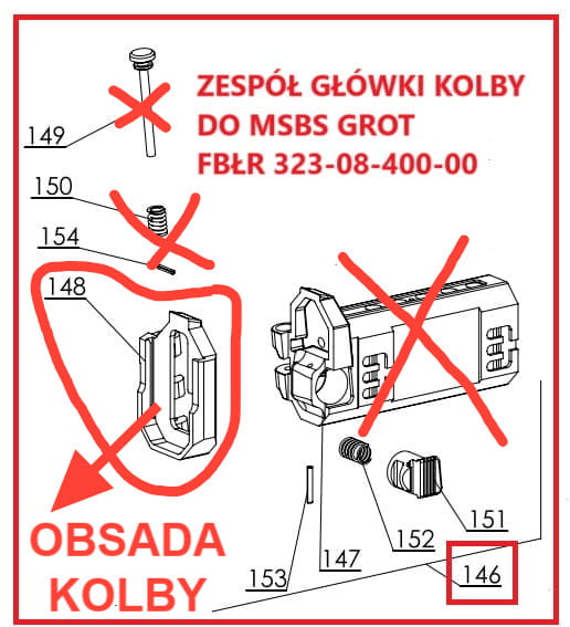 Oryginalna część zamienna - obsada kolby pasująca do karabinka MSBS GROT w wersji A0/A1/A2 (cywilna i wojskowa).