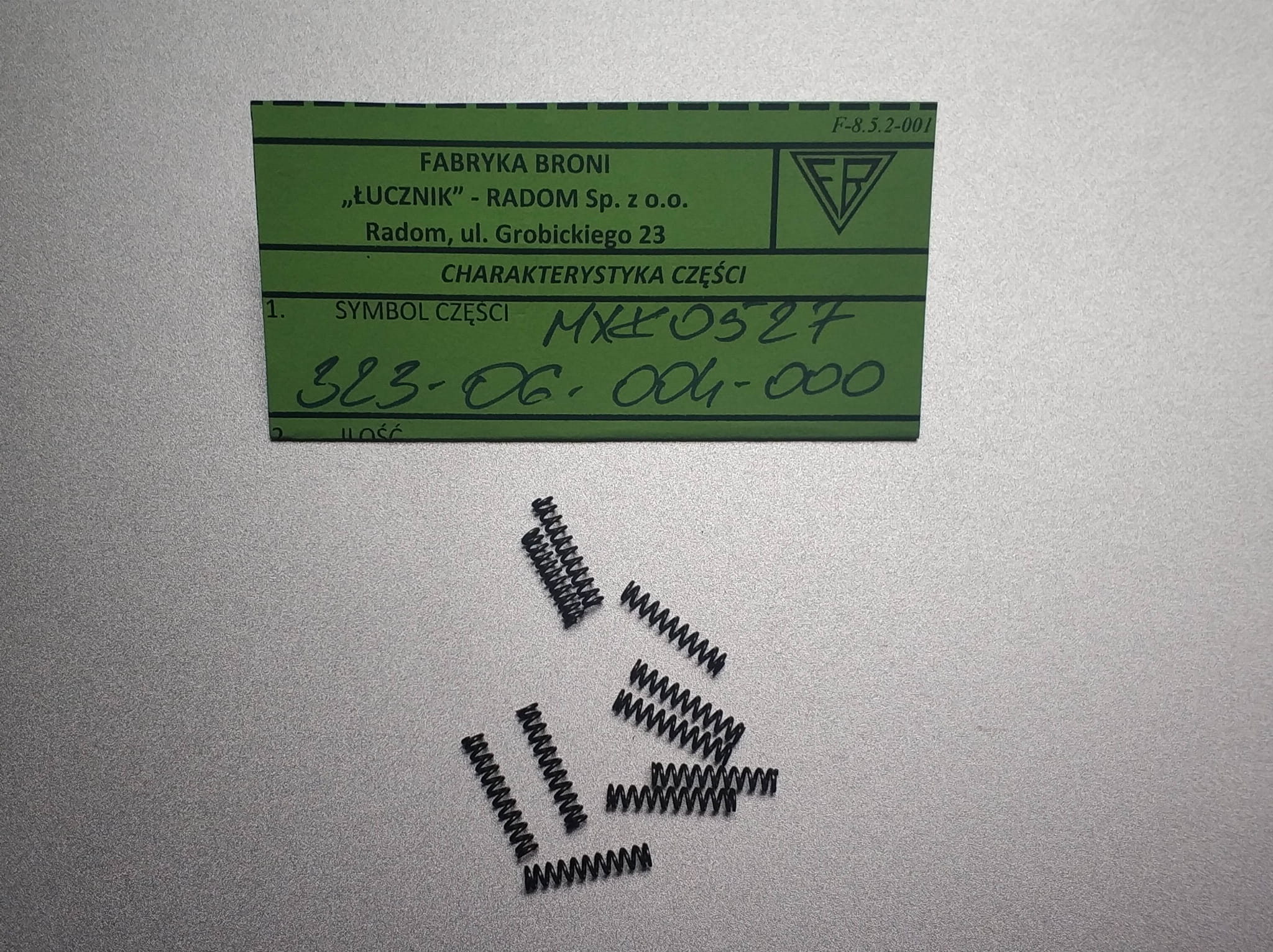 Uwaga! Należy zwrócić uwagę na skompletowanie wszystkich elementów do danej części w celu jej zamontowania. Dotyczy to m.in. potrzebnych wkrętów, kołków, zawleczek i innych wymaganych akcesoriów montażowych. Dobór powyższego należy wykonać wg załączonych plansz z charakterystyką karabinka. W przypadku braku poszukiwanej części w sklepie Tarczownia.PL, należy napisać do nas e-mail z numerem danej części wg załączonych plansz w celu jej zamówienia w Fabryce Broni Łucznik w Radomiu.