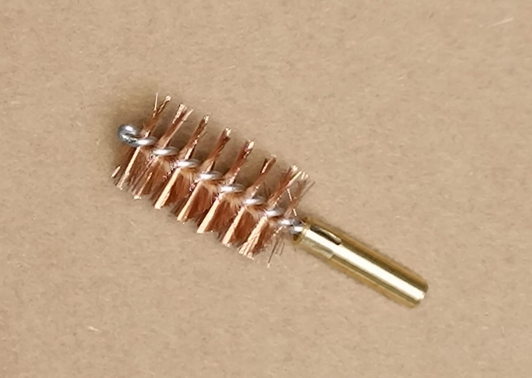 Oryginalny element z przybornika do karabinka MSBS GROT: szczotka mosiężna do czyszczenia komory gazowej.