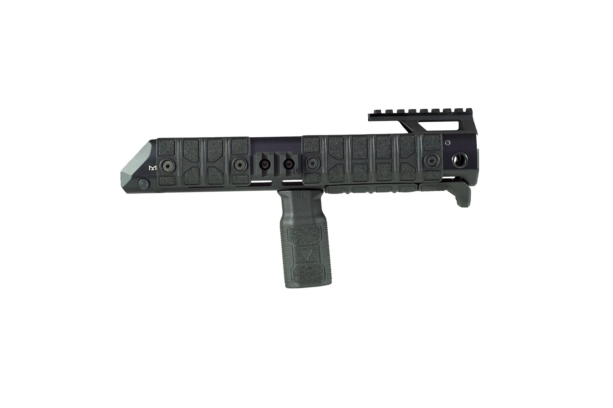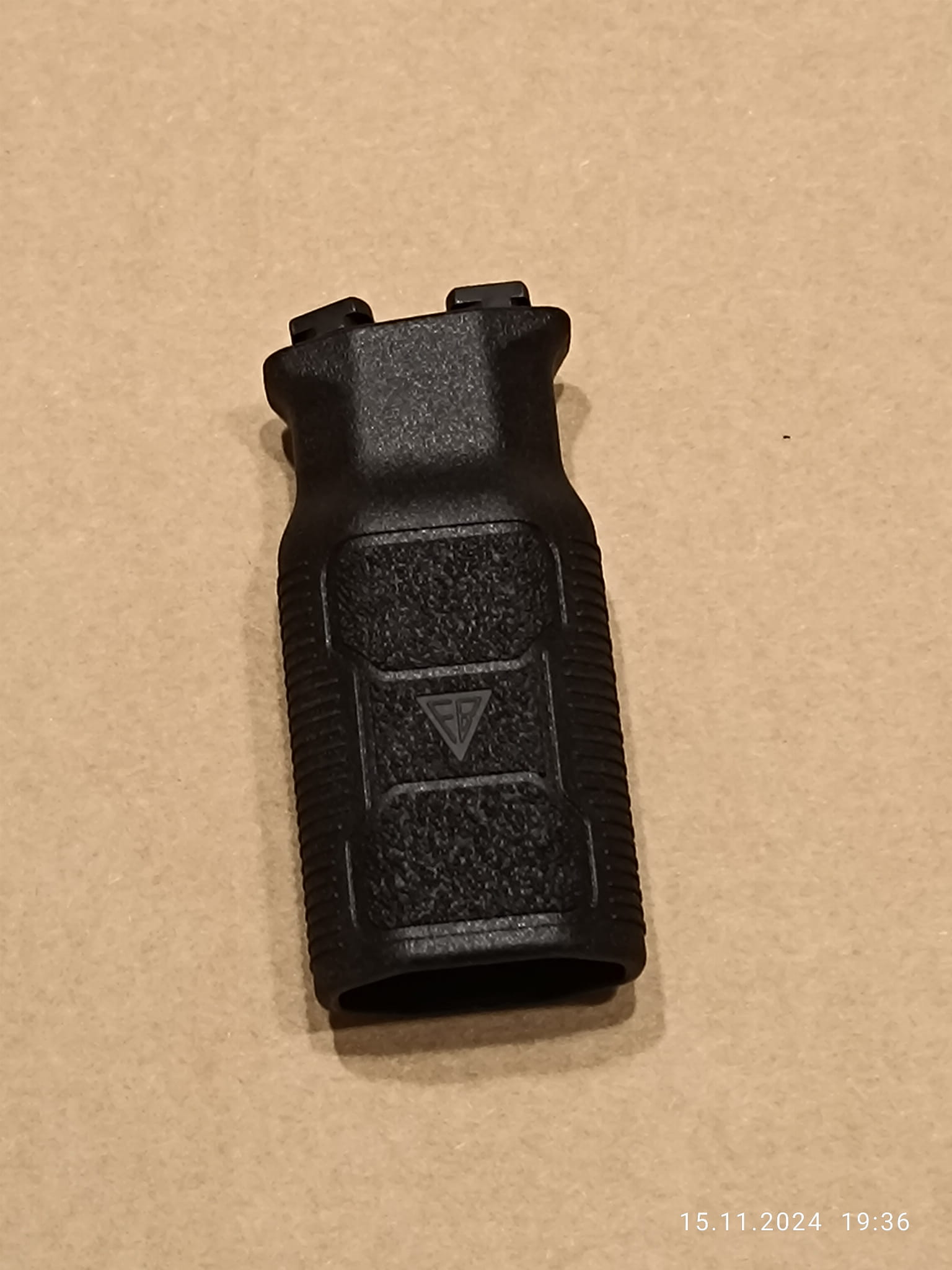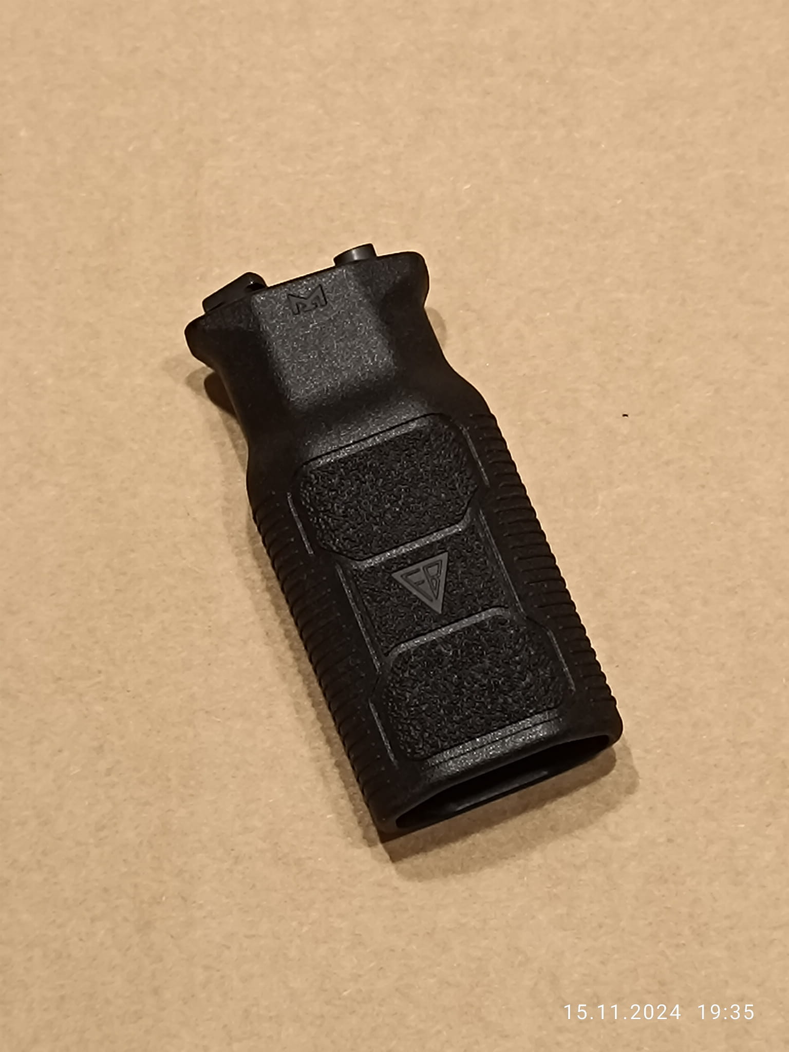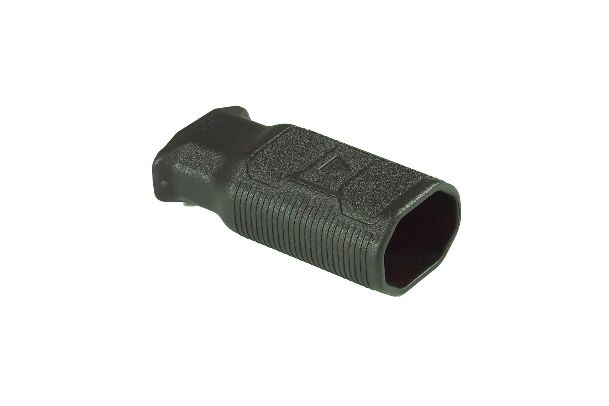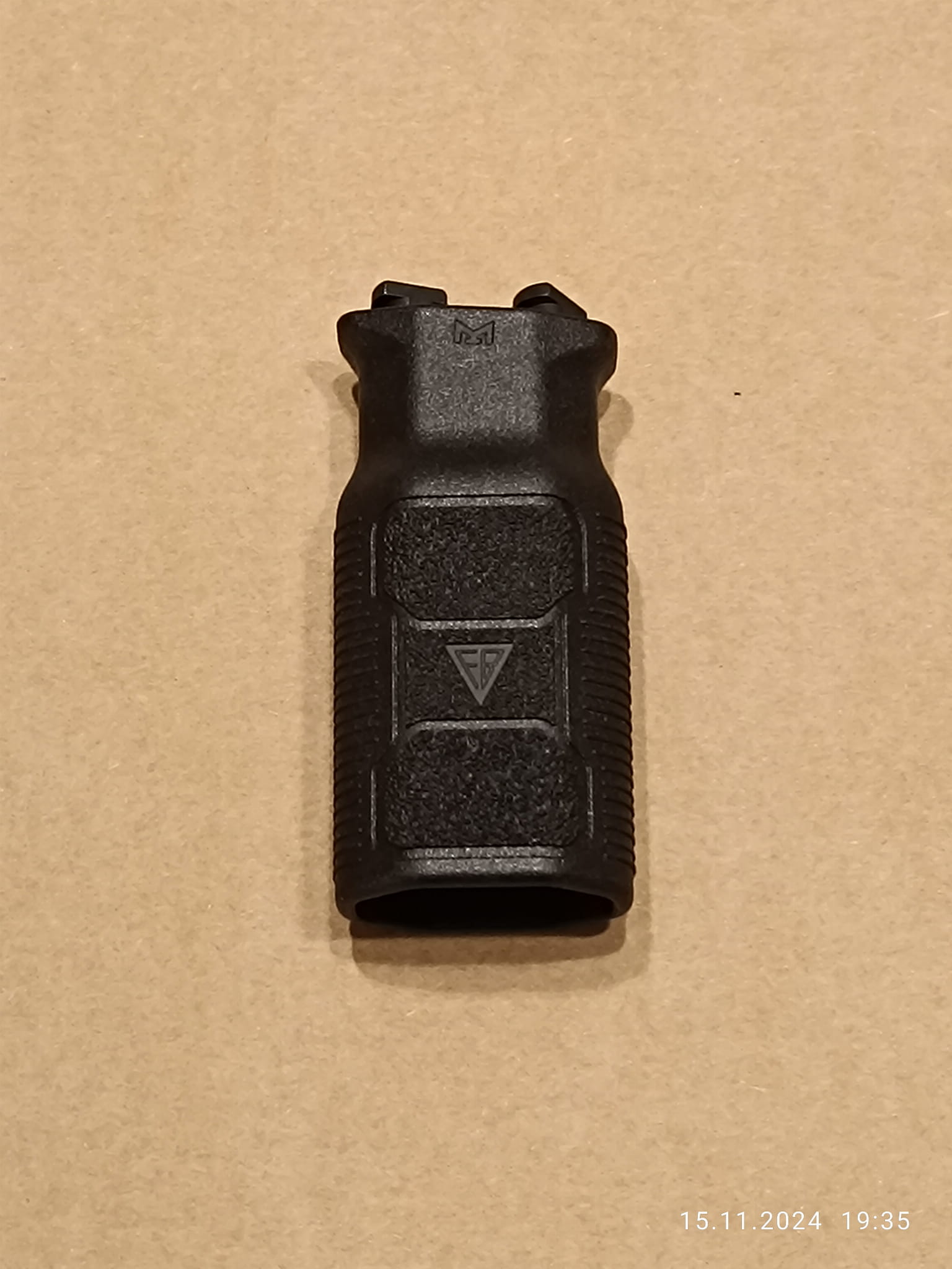 Chwyt przedni wykonany jest z wysoce wytrzymałego tworzywa sztucznego, jest wyposażony w system montażu typu M-LOK umożliwiający jego bezpośrednie zewnętrzne zamocowanie do elementów broni wyposażonych w ten system. Chwyt jest wyjątkowo lekki i kompaktowy, jego boczne powierzchnie są nieco wydłużone w stosunku do wymiaru poprzecznego. Powyższe rozwiązanie wraz ze specjalnym agresywnym fakturowaniem powierzchni bocznych chwytu, poprzecznym prążkowaniem oraz ośmiokątną bryłą, poprawia chwytność zarówno osłoniętą, jaki i nieosłoniętą dłonią. Dodatkowo chwyt w zależności od sposobu montażu, może zostać zamontowany z kątem dodatnim lub ujemnym w zależności od preferencji użytkownika. Jego uniwersalność umożliwia standardowy uchwyt pionowy, kątowy chwyt typu „thumb break” oraz ogranicznik chwytu „Hand stop”. Chwyt przedni pasuje do karabinków systemu AR-15 wyposażonych w łoże M-LOK, jak też innych systemów broni wykorzystujących powyższy standard montażu.