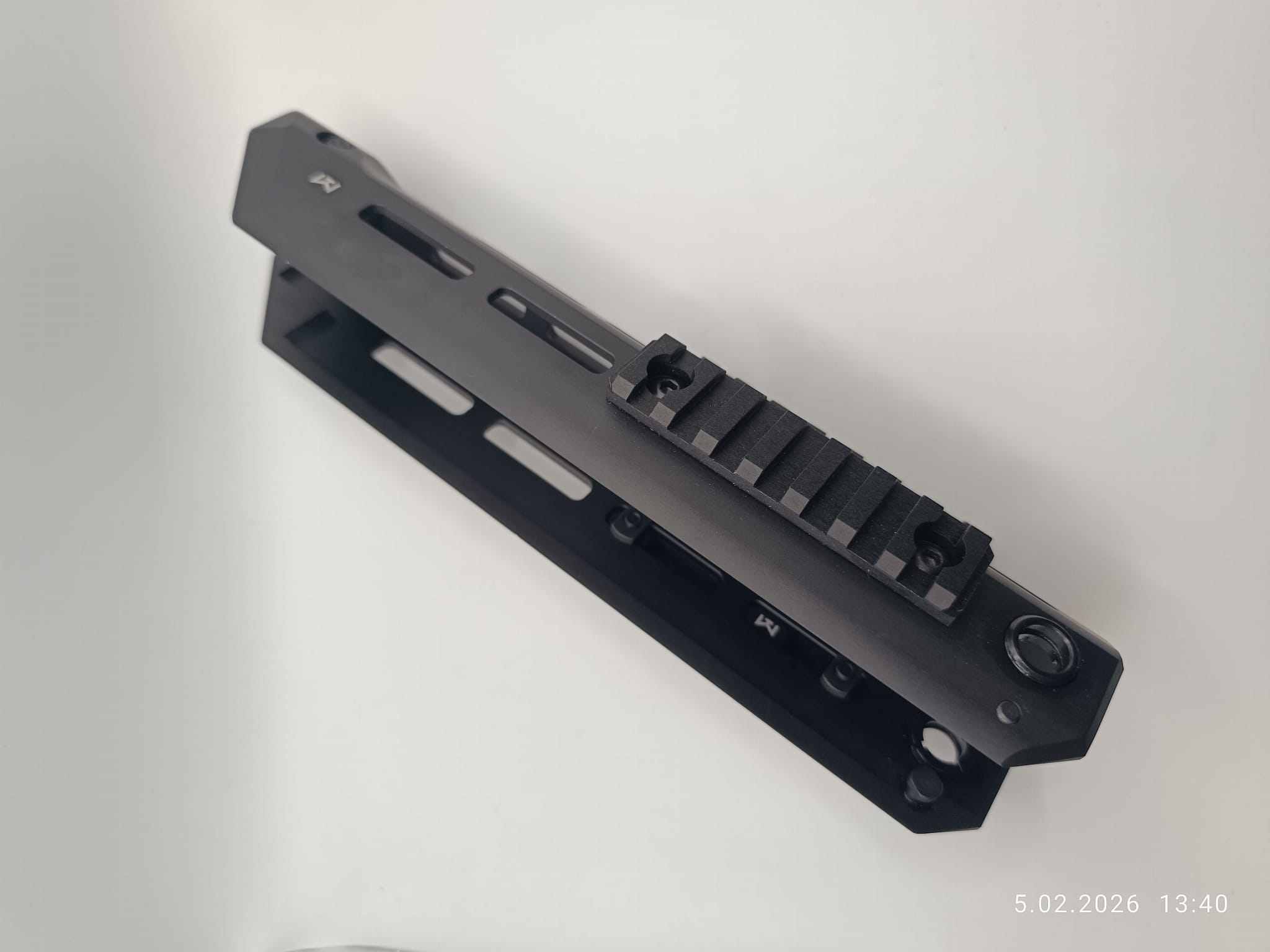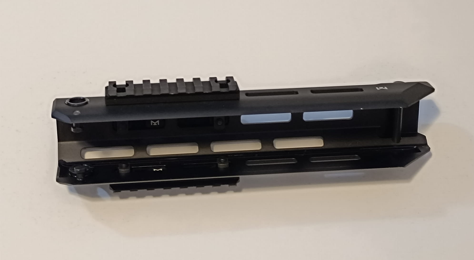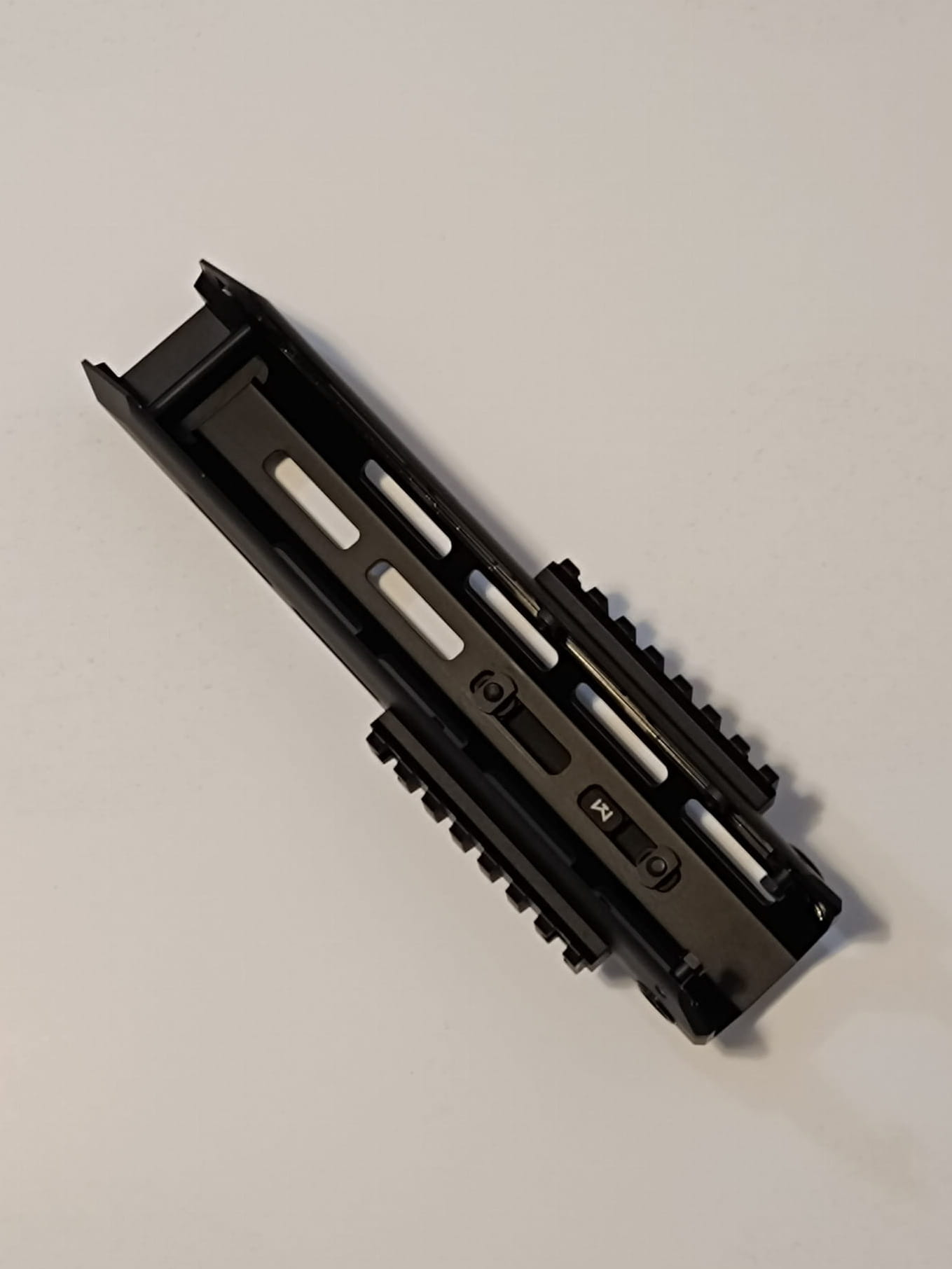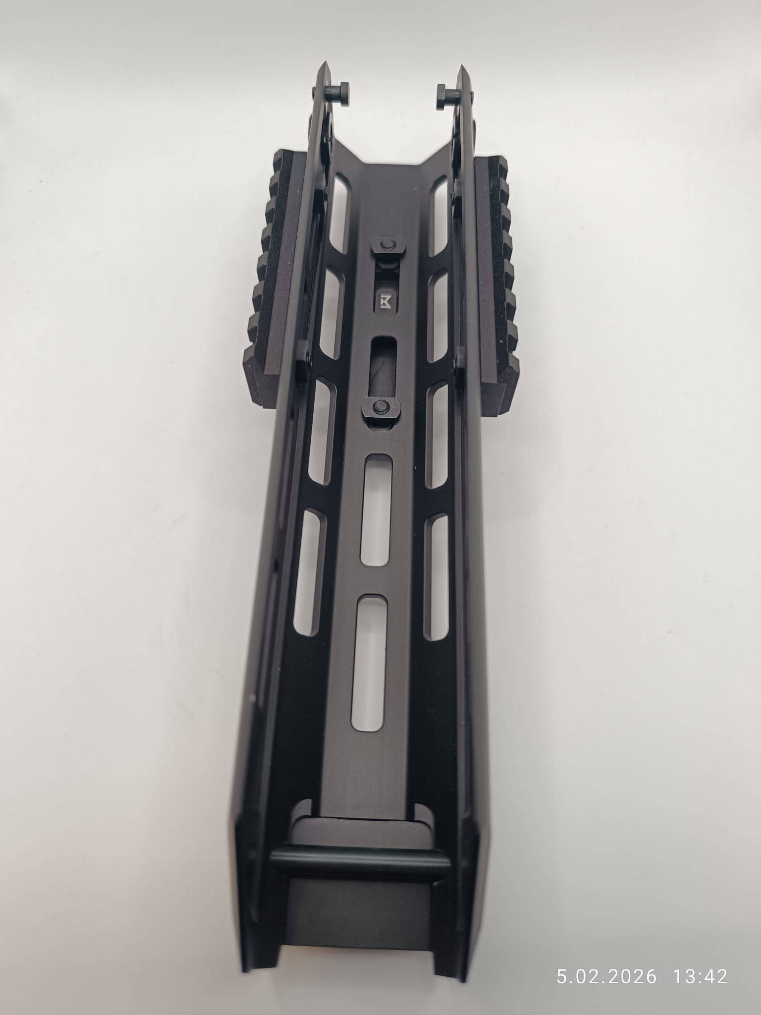 Zespół krótkiego łoża ze slotami M-LOK z 3 szynami Picatinny, gniazdami pasa, kołkami łoża do karabinka MSBS GROT A1/A2 wykonane z aluminium lotniczego o wysokiej wytrzymałości.