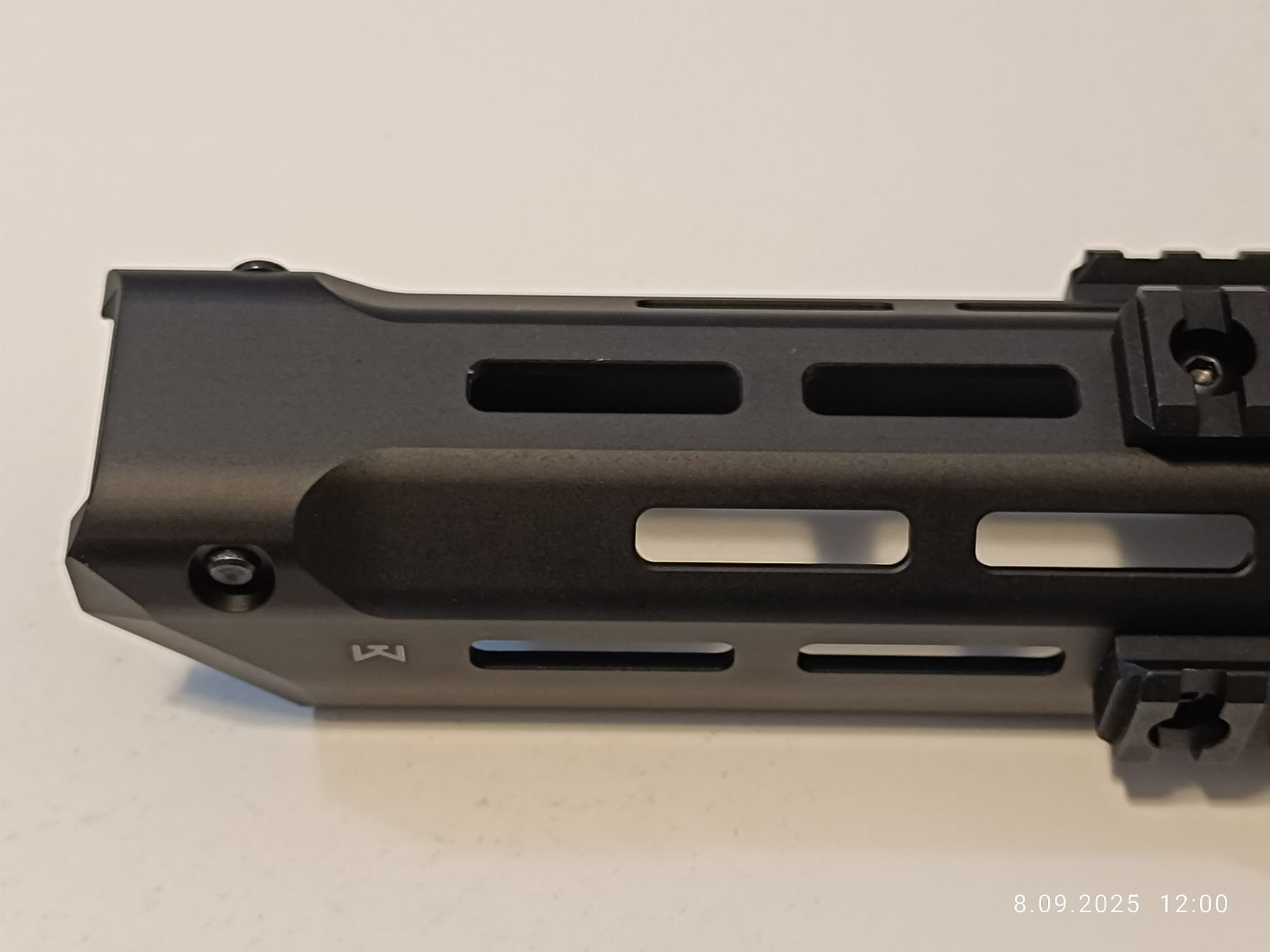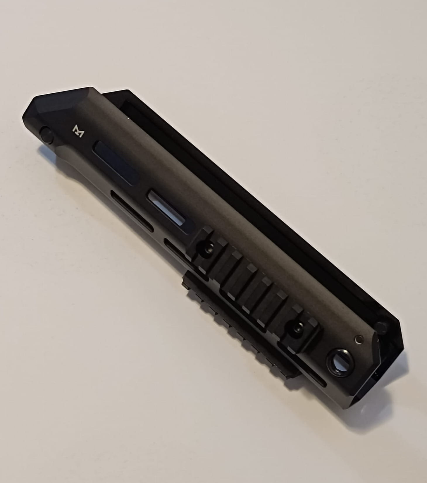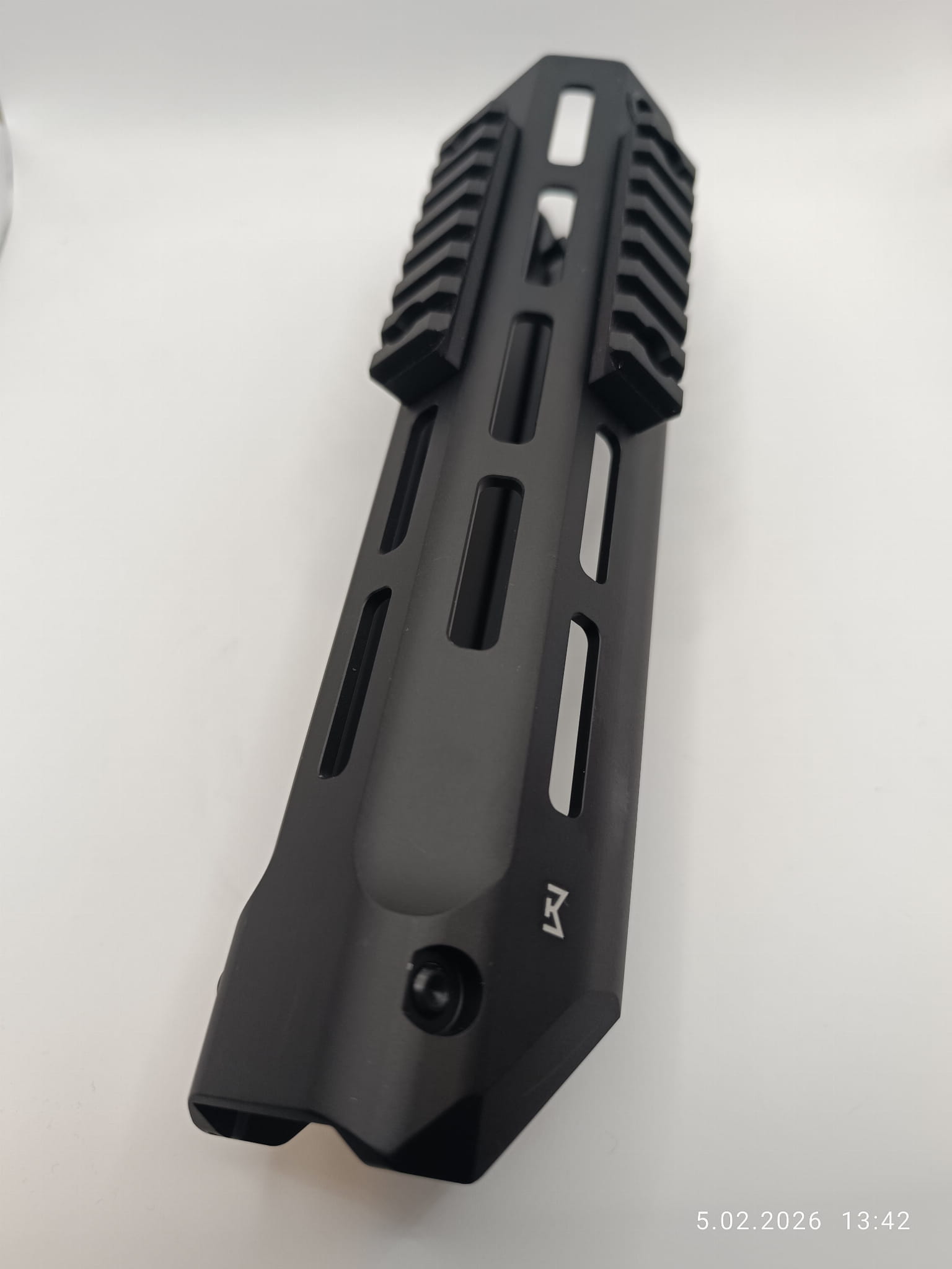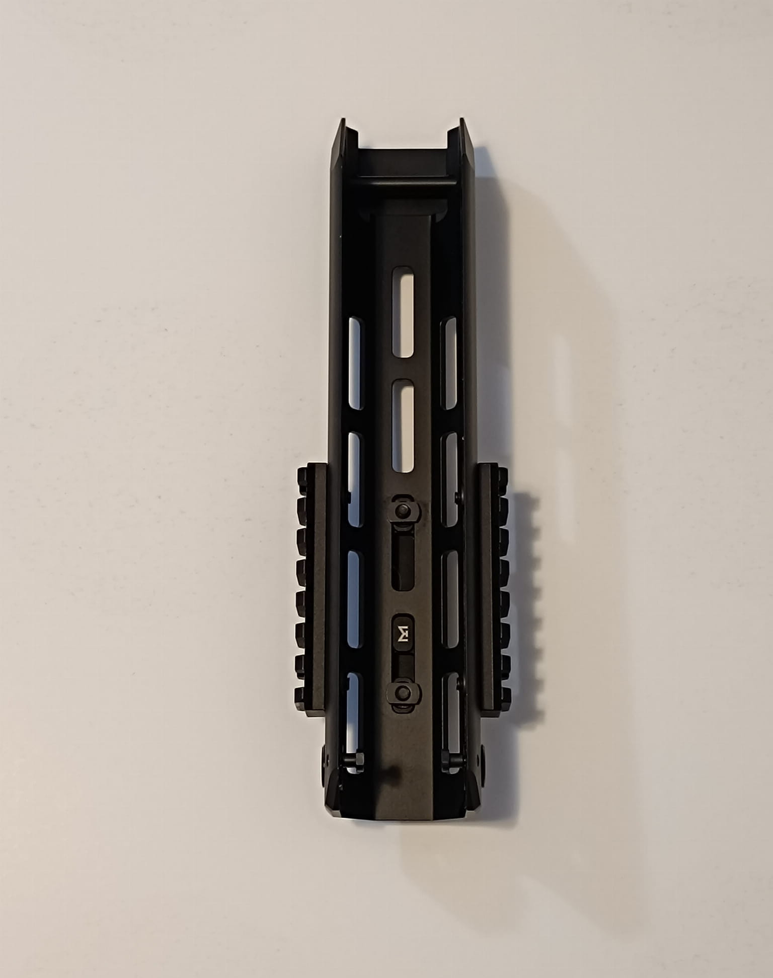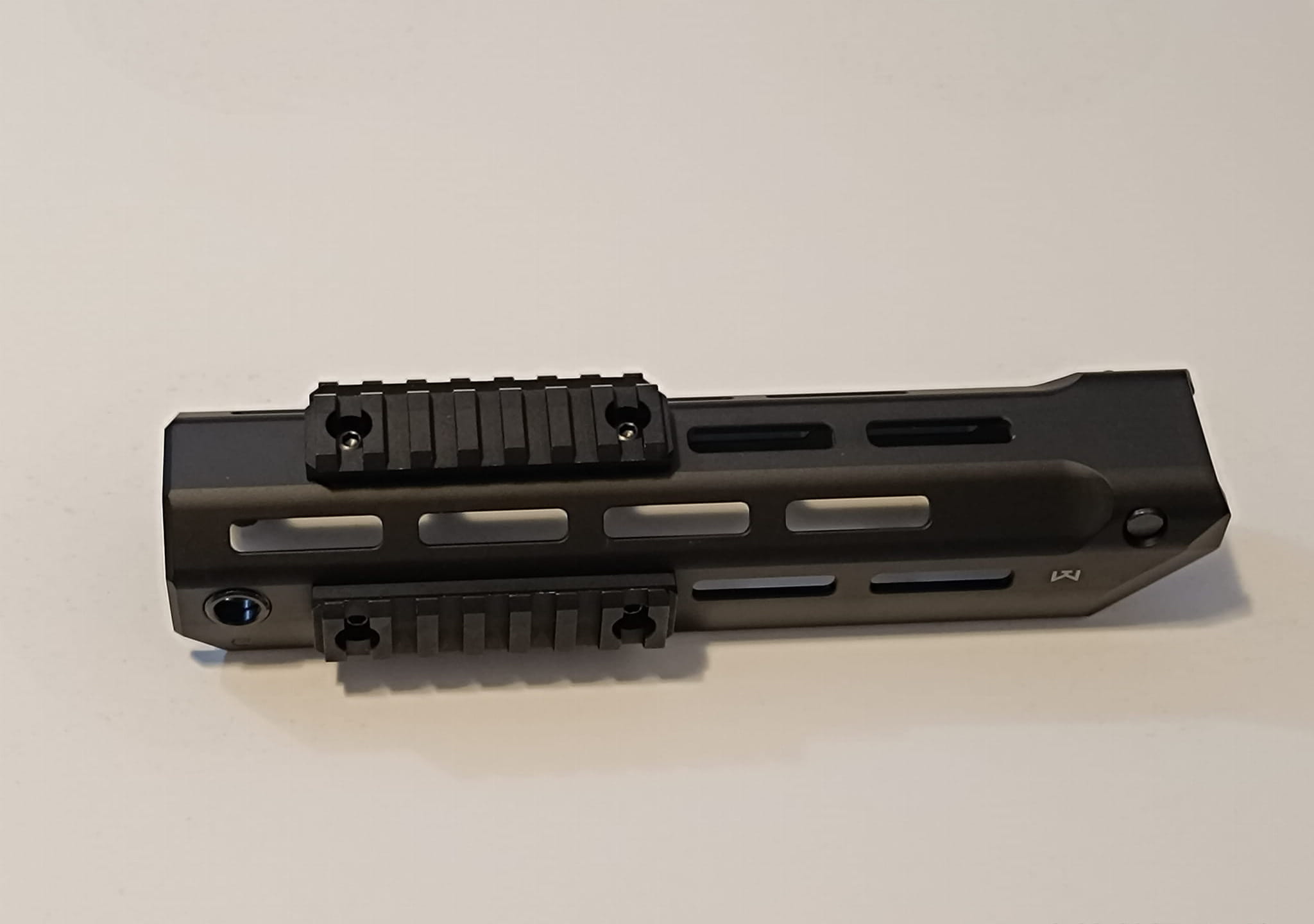 Zespół krótkiego łoża ze slotami M-LOK z 3 szynami Picatinny, gniazdami pasa, kołkami łoża do karabinka MSBS GROT A1/A2 wykonane z aluminium lotniczego o wysokiej wytrzymałości.