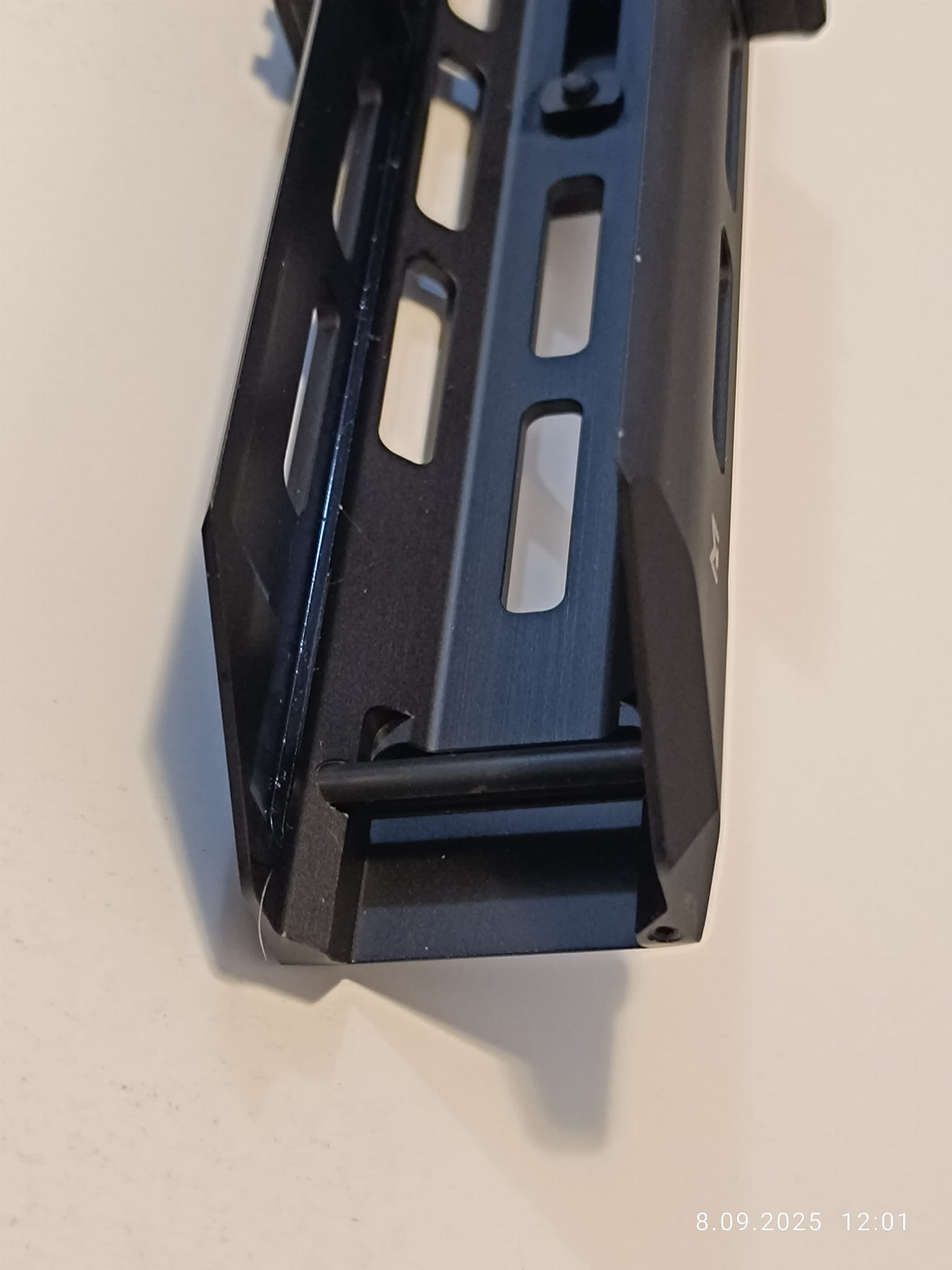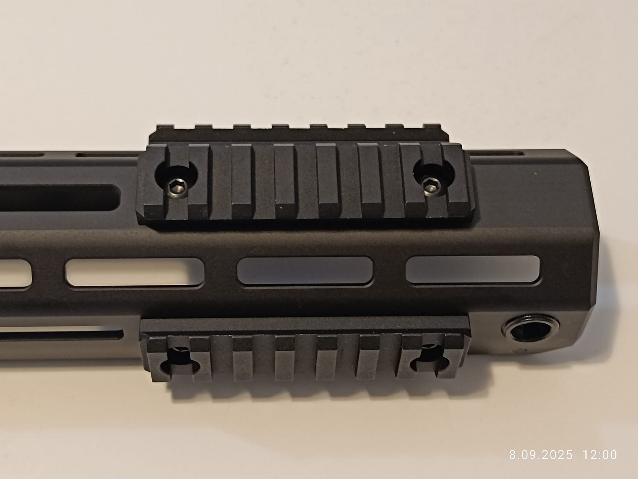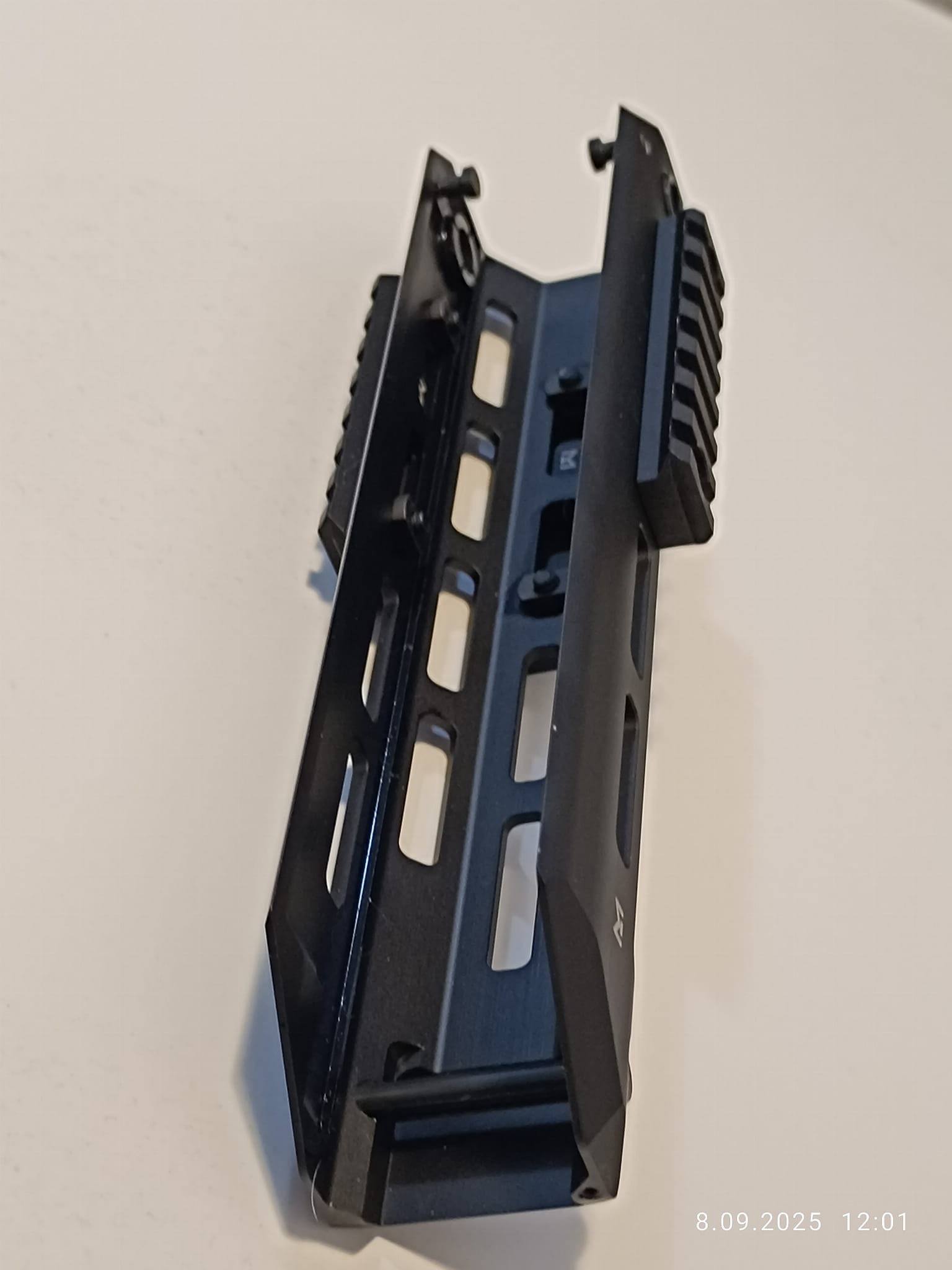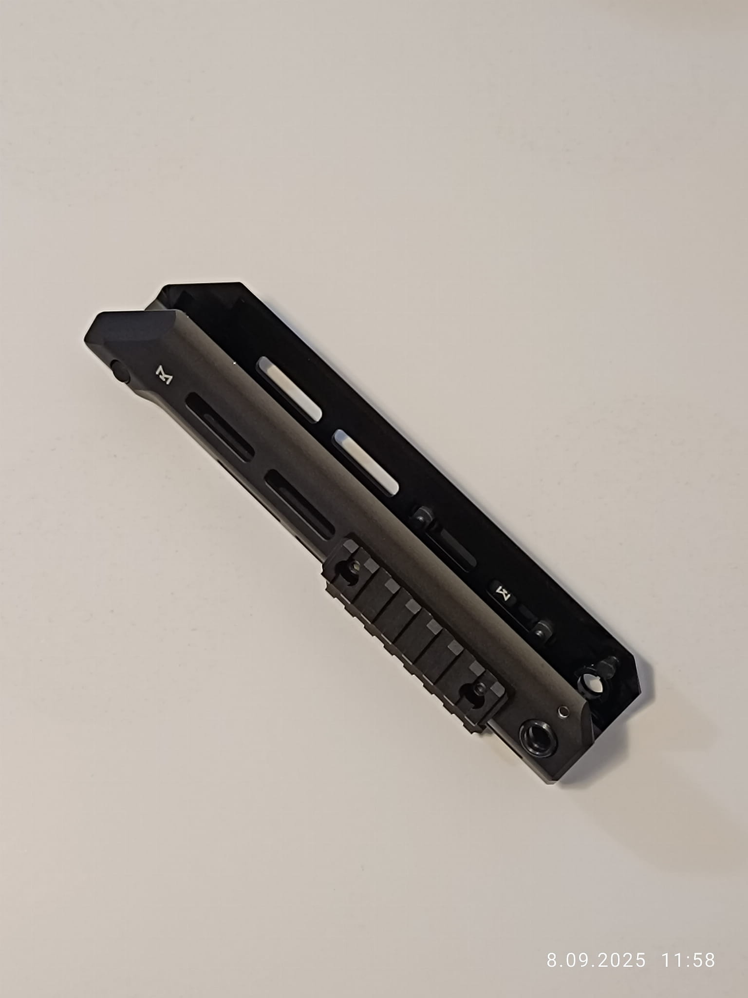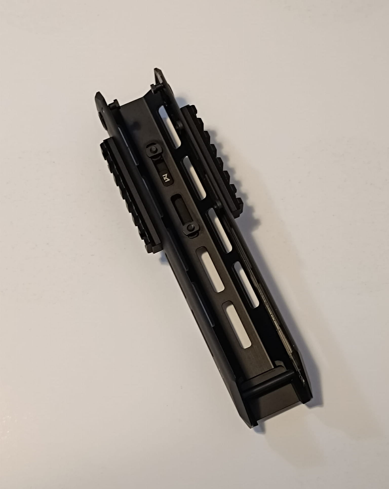 Zespół krótkiego łoża ze slotami M-LOK z 3 szynami Picatinny, gniazdami pasa, kołkami łoża do karabinka MSBS GROT A1/A2 wykonane z aluminium lotniczego o wysokiej wytrzymałości.