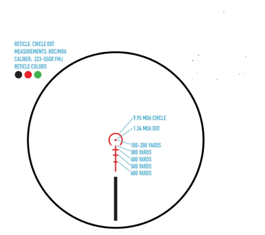 Siatka celownicza wraz z pokrętłami do regulacji skalibrowana jest w jednostce MOA. Siatka celownicza znajduje się w drugiej ogniskowej przez co pomimo zmiany przybliżenia w zakresie 1-10, siatka nie zmienia ani grubości ani rozstawienia.