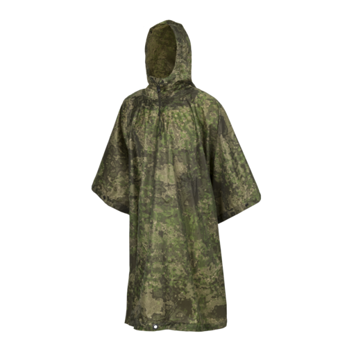 Wyprodukowana przez firmę Helikon nieprzemakalna, szybko schnąca peleryna przeciwdeszczowa wykonana z materiału RipStop poliester. Ponczo posiada zatrzaski umożliwiające zrobienie rękawów lub połączenie dwóch takich samych peleryn razem. Kaptur wyposażony jest w sznurkowy ściągacz.