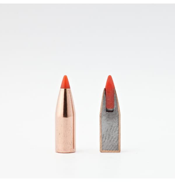 Pocisk: V-MAX® - pocisk na szkodniki, szybko fragmentujący. Specjalnie zaprojektowany opływowy kształt oraz matchowy płaszcz zakończony ostrym polimerowym czubkiem zapewniają doskonałą celność na dowolnym dystansie tak samo jak wybuchową ekspansję nawet przy niskich prędkościach. Ołowiany rdzeń otacza trzon czubka, a puste wgłębienie pod nim pozwala czubkowi zgromadzić energię zanim wbijając się do środka spowoduje natychmiastową fragmentację rdzenia i płaszcza. Płaszcz wyprodukowany w technologii AMP® (Advanced Manufacturing Process - Zaawansowany proces produkcyjny).