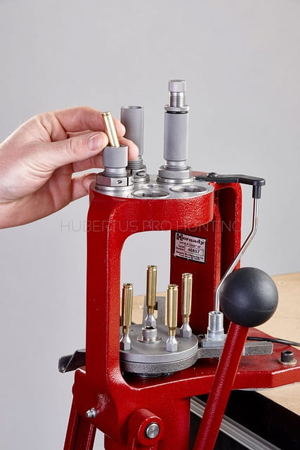 Przyrząd akcesoryjny do prasy progresywnej Hornady AP złużący do usuwania crimpu z krawędzi gniazda spłonki (np. łuski GGG).
