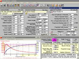 Dzięki temu oprogramowaniu możesz dość dokładnie dobrać odpowiedni proch do elaboracji pod kątem posiadanej broni. Program umożliwia wprowadzanie wielu zmiennych, m.in. takich jak pojemność łuski, głębokość osadzenia pocisku, długość lufy, itd. W efekcie otrzymujesz niezbędne dane pokazujące m.in. prędkość wylotową pocisku, ciśnienie w komorze, procent wypełnienia łuski oraz procent spalonego prochu, itd.