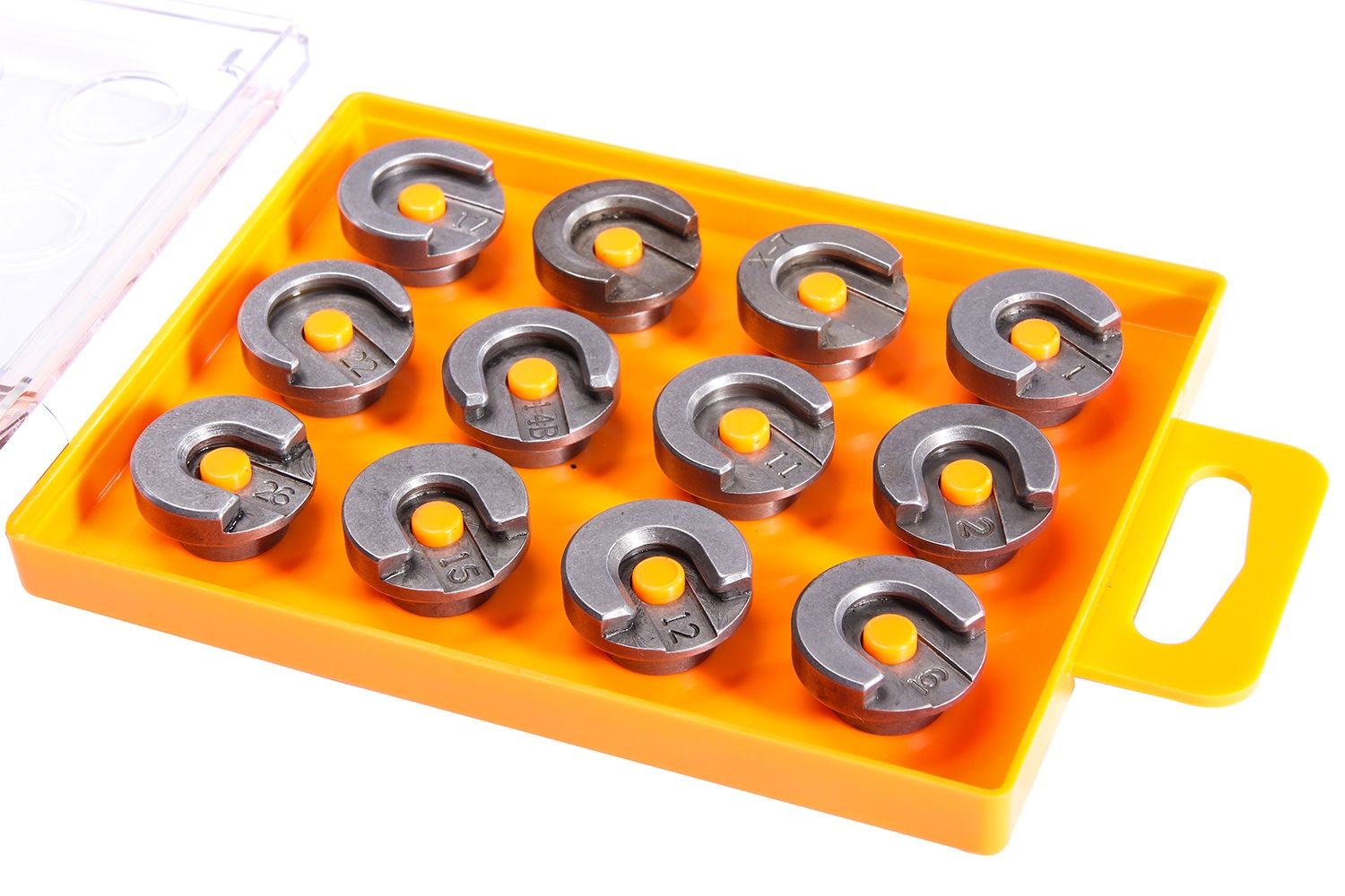 Zestaw uchwytów łusek do elaboracyjnej prasy jednostanowiskowej. W zestawie znajdują się uchwyty o numerze: 1, 2, 6, 7, 11, 12, 13, 14B, 15, 17, 22, 26. ShellHoldery pasują do pras elaboracyjnych m.in. takich firm jak Hornady, RCBS, LEE i innych pras kompatybilnych.