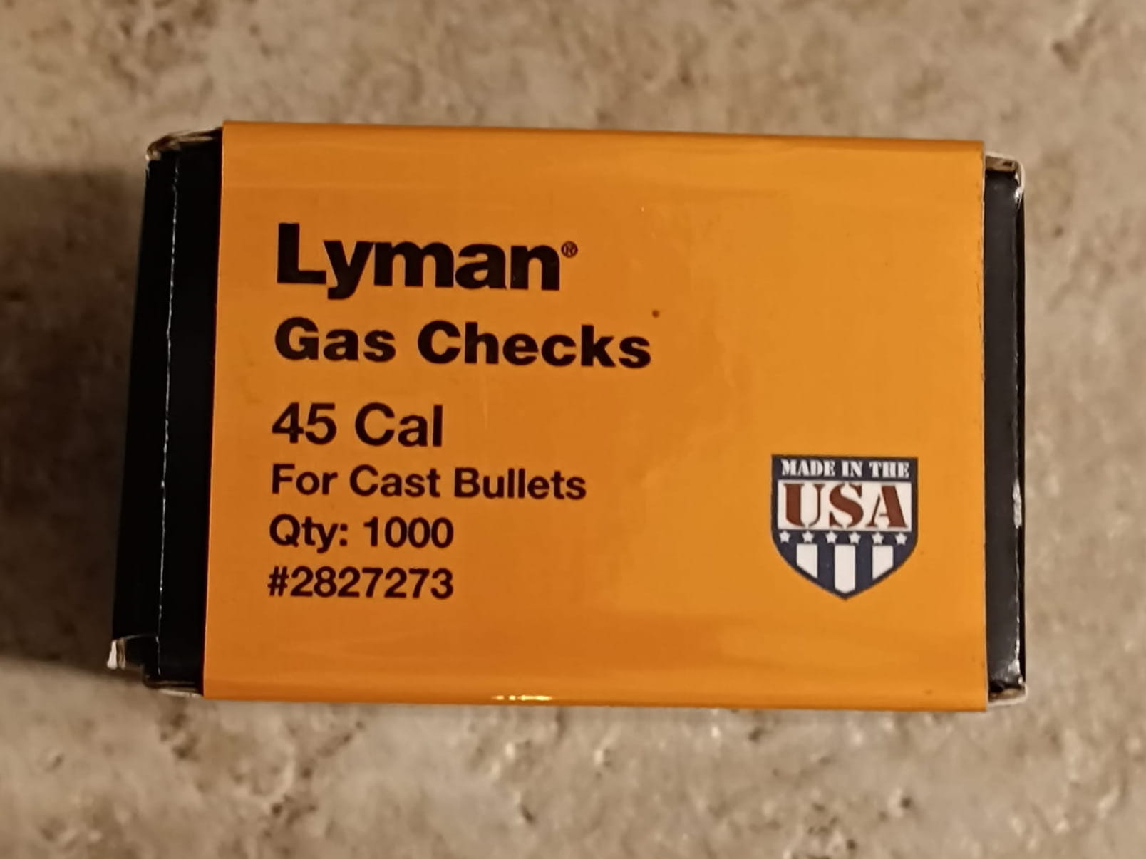 Gas Check "podkładka" miedziana pod pocisk z ołowiu. Powoduje ochronę otwartego pocisku ołowianego przed stopieniem w trakcie wystrzału. Pozwala stosowanie w elaboracji na pociskach ołowianych mocniejszych naważek.