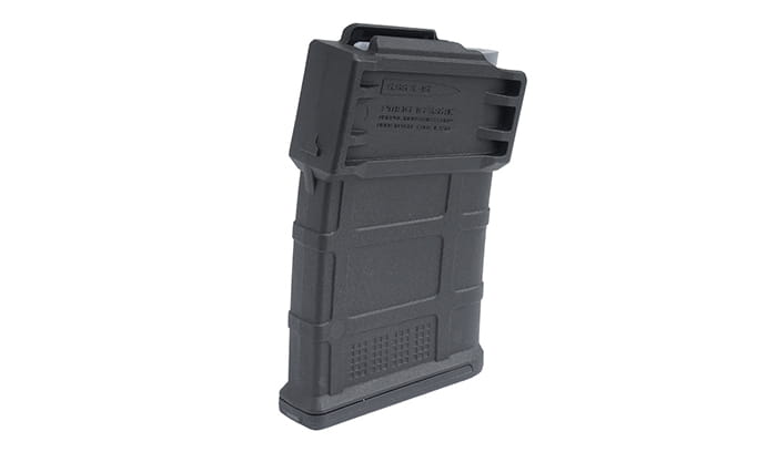 Magazynek serii PMAG o pojemności 10 sztuk amunicji. Dedykowany do broni z gniazdem standardu AICS w kalibrze .223/5,56x45 mm. Wykonany został z lekkiego polimeru oraz posiada fakturowanie na powierzchni. Konstrukcja charakteryzuje się możliwością rozłożenia magazynka bez potrzeby użycia narzędzi.