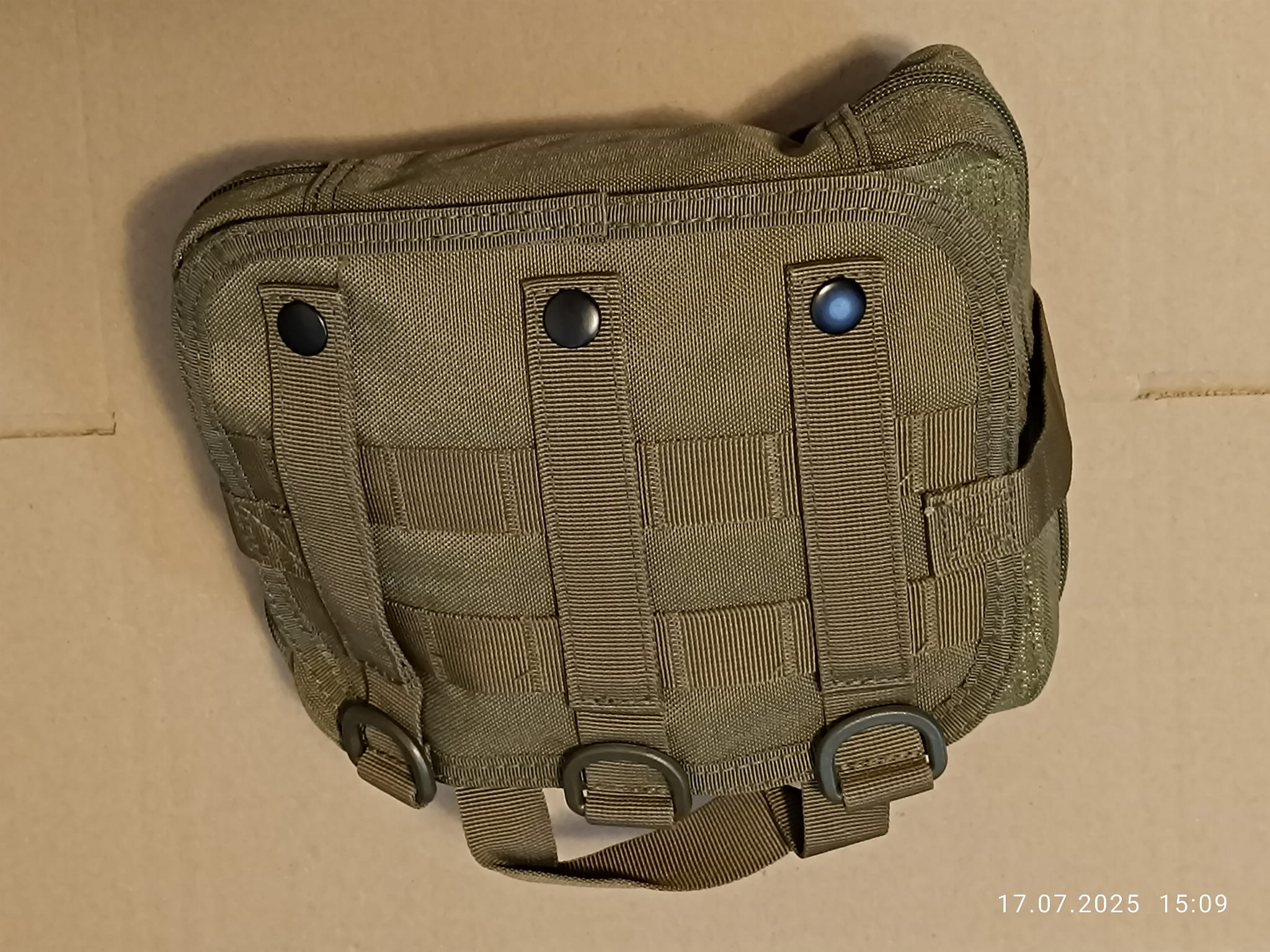 - mocowana do plecaka za pomocą taśm z napami i systemu taktycznego molle,