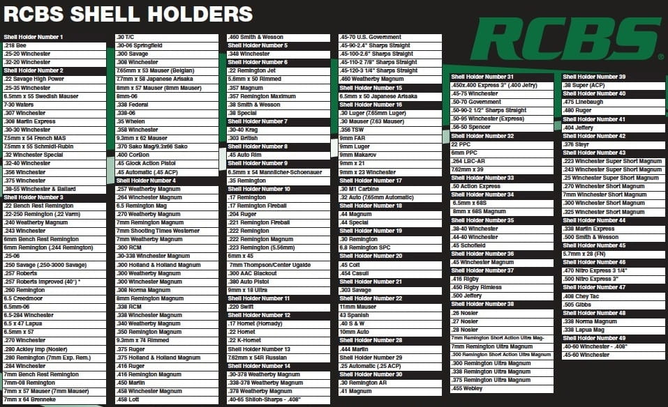 Lista shell holderów RCBS: