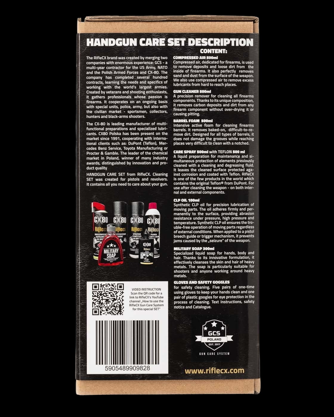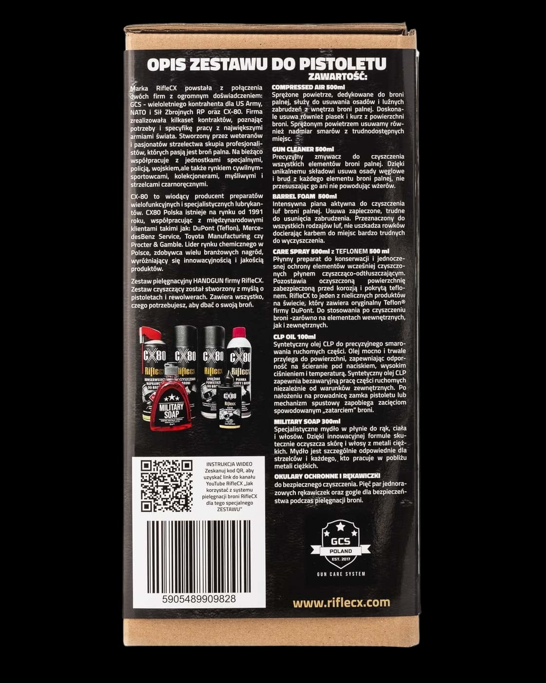 RifleCX - HANDGUN SET, kompletny zestaw środków i smarów do konserwacji pistoletów i rewolwerów (Konserwacja Broni Krótkiej)