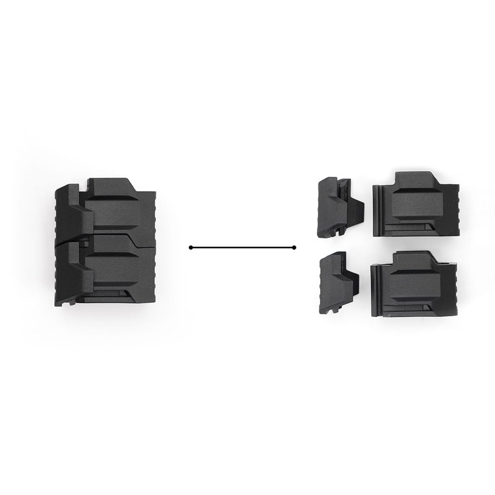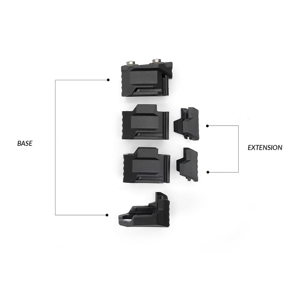 Moduły rozszerzające Strike Stacked Angled Grip pozwalają na zwiększenie długości podstawy chwytu. Dzięki niemu użytkownik nie tylko dostosuje chwyt w zależności od potrzeb, ale również od zastanej sytuacji. Płytki są dosyć kompaktowych rozmiarów. Oznacza to, że kiedy nie są potrzebne to można je wygodnie schować do kieszeni uniwersalnej MOLLE. Użycie ich następuje poprzez nasunięcie szyn poszczególnych elementów na wcięcia drugich.