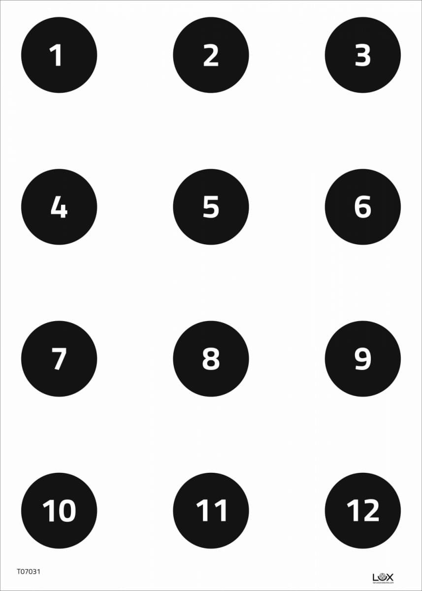 Tarcza zbiorcza składająca się z 12 tarczek kołowych o średnicy 9cm. Tarcza wykonana z papieru 80g. Przeznaczona do strzelania pistoletu bojowego na dystansie 3m, 5m, 7m itd. Dzięki tarczy można przeprowadzić trening bez konieczności częstej zmiany tarczy.