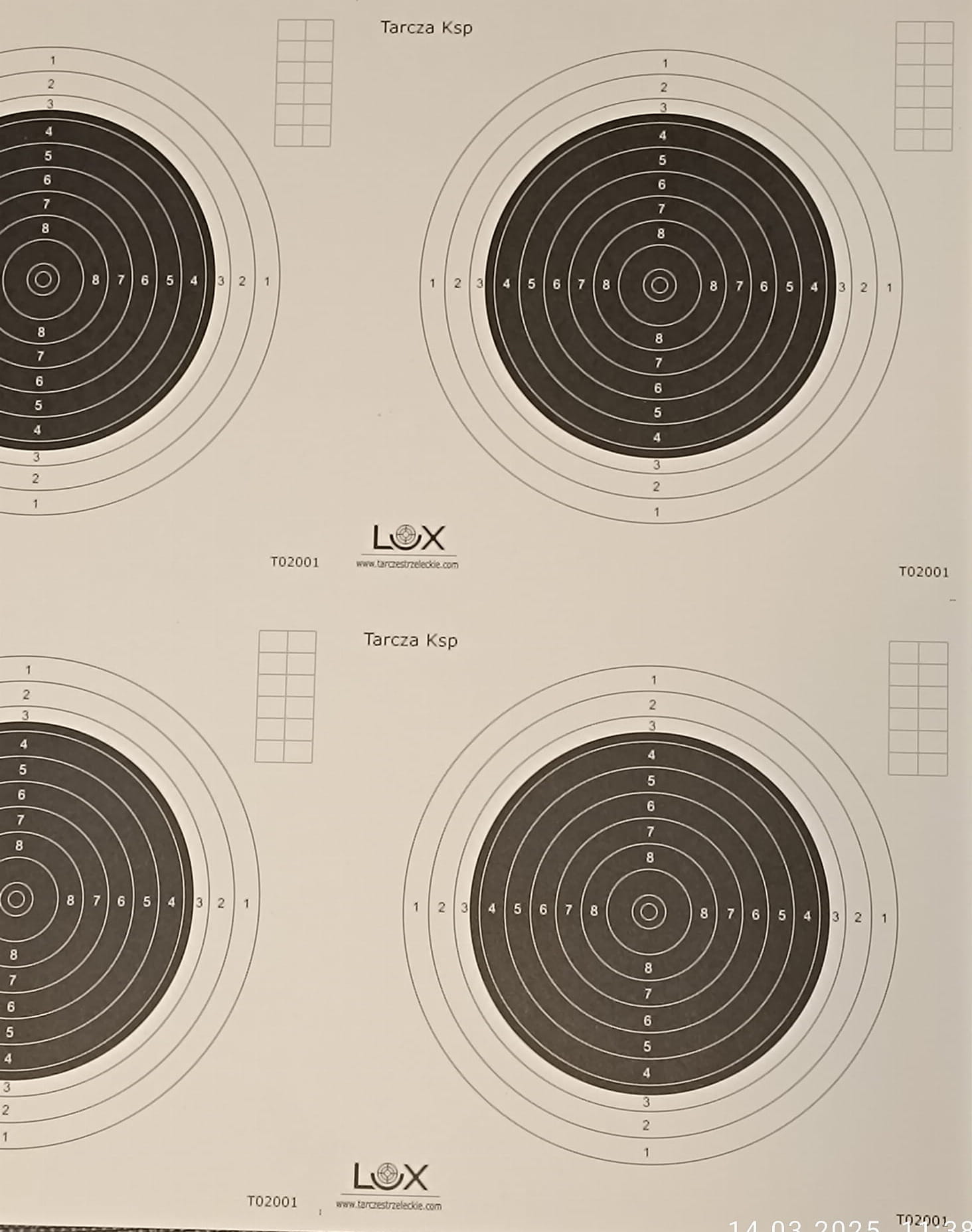 Tarcze - TS-1x5 (Kspx5) Trening, 5 tarcz TS-1 na 1 arkuszu do treningów konkurencji karabin sportowy 50m, papier 80g, op. 50 szt. (R_500x500mm)