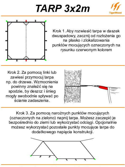 Uwaga! Tarp możemy nabyć bez zawiesi lub z zawiesiami z bardzo wytrzymałej linki Black Silk (linka polskiej produkcji, wielokrotnie wytrzymalsza od paracordu).