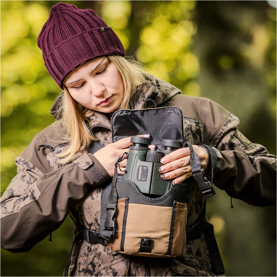 - przyciski po prawej stronie - przyciski umieszczone w ten sposób pozwalają na sterowanie funkcjami dalmierza i trzymanie lornetki jedną ręką.