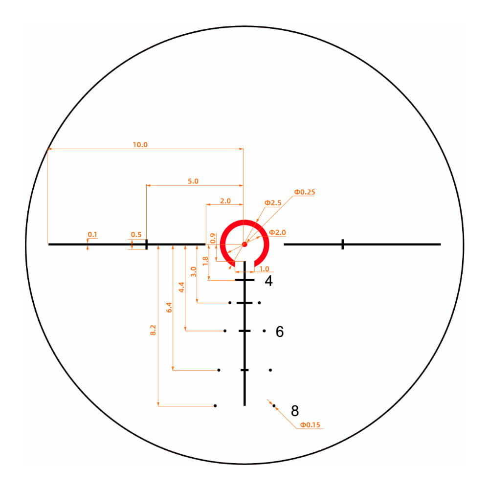 Urządzenie zostało stworzone z myślą o dynamicznym strzelaniu na krótkim i średnim dystansie. Luneta na dystansie 100 m zapewnia pole widzenia rzędu 35 m przy minimalnym zbliżeniu oraz 6 m przy maksymalnym. Dodatkowo celownik można regulować w poziomie i pionowym w zakresie 60 MIL. Pokrętła regulacji ostrości są łatwo dostępne i wydają charakterystyczny klik przy manipulacji. Ustawienia krzyża celowniczego można regulować o 1/10 MIL na klik.