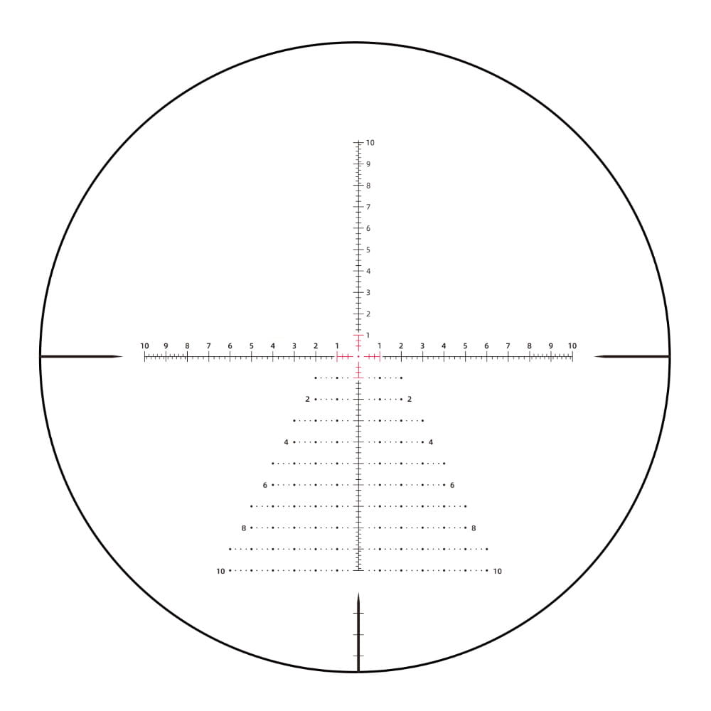 Tauron 5-40x56 ED od Vector Optics oferująca zmienne powiększenie w zakresie 5-40x z prawdziwym powiększeniem rzędu 8x. Wyposażona jest w siatkę celowniczą typu VTA-8 MIL z podświetlanym punktem osadzoną na pierwszym planie (FFP). Skaluje się ona wraz z przybliżeniem i swoje największe wymiary osiąga przy maksymalnym powiększeniu.