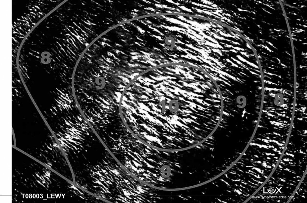 Tarcze - WP-T3 Wzór Wojska Polskiego, strefa trafień skutecznych 9x czarny okrąg (wym. 480x680mm), papier 80g, op. 50 szt. (R_500x700mm, WP-T3-ZK4225)